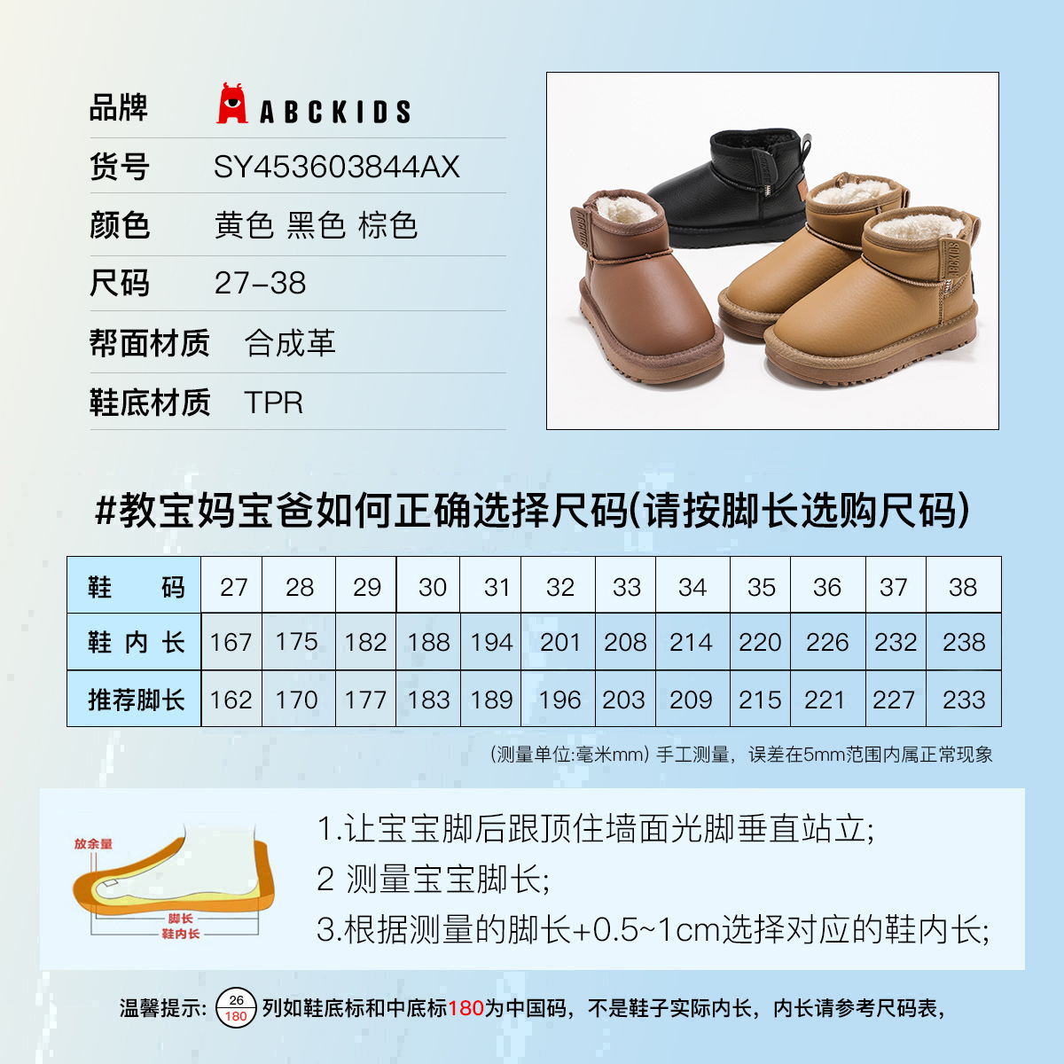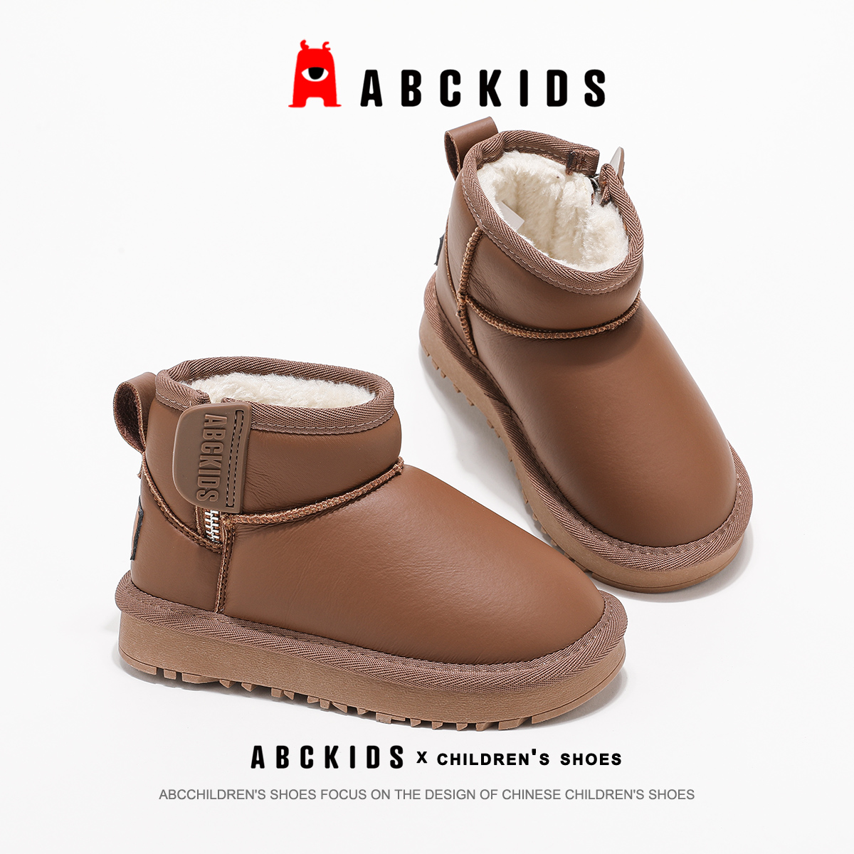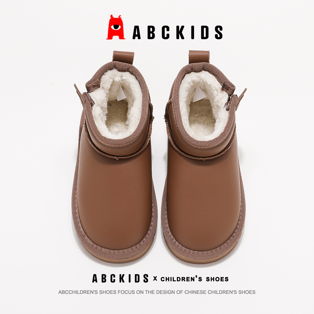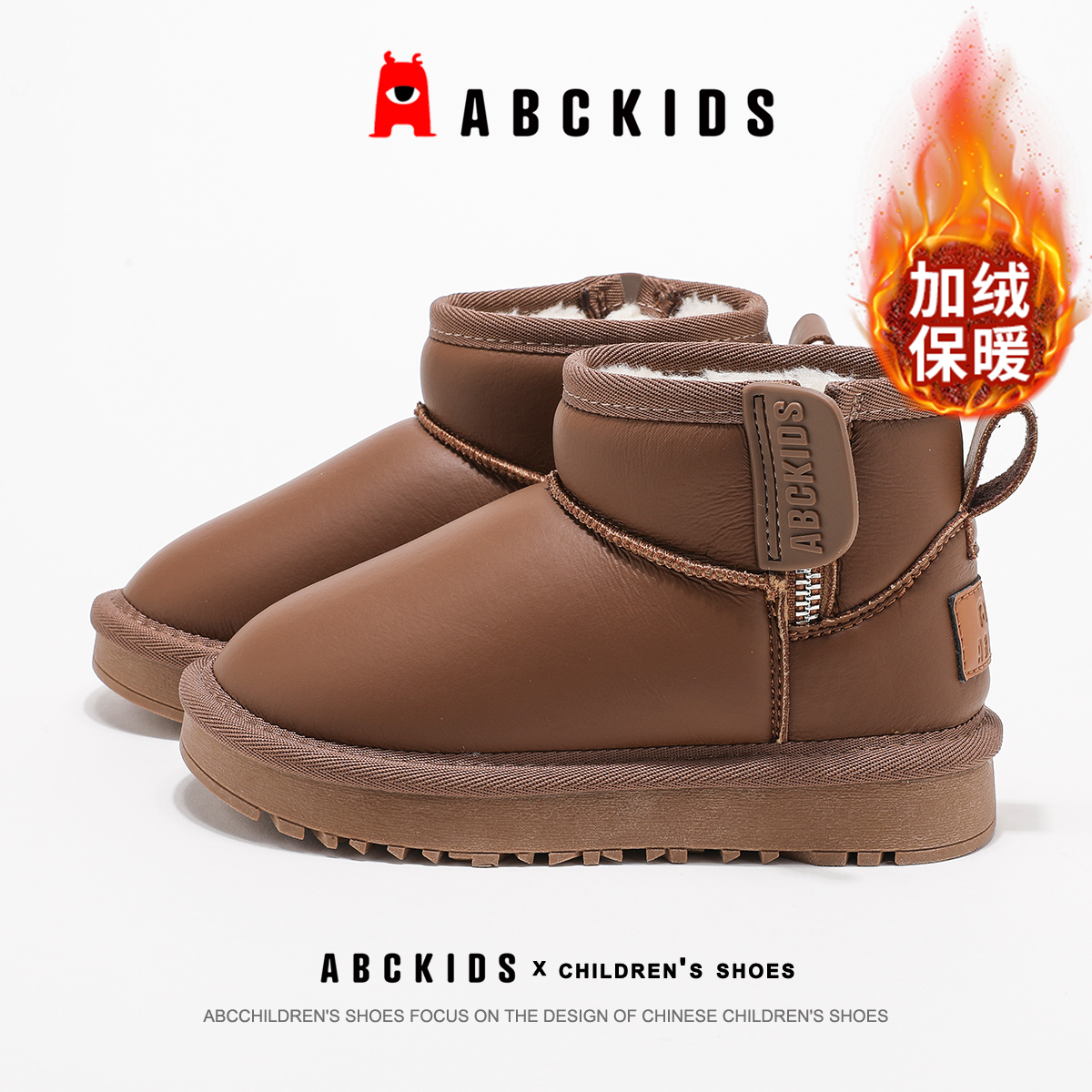 ABCkids男童加绒加厚保暖雪地靴冬季新款女童加绒防水防寒棉短靴
