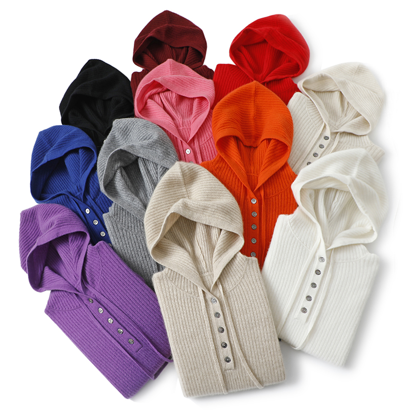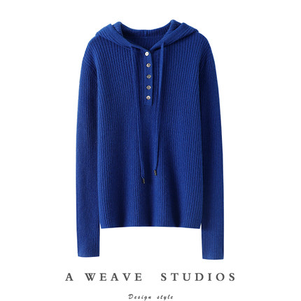 好看到心坎!连帽羊绒衫女100纯山羊绒毛衣针织打底衫秋冬帽衫