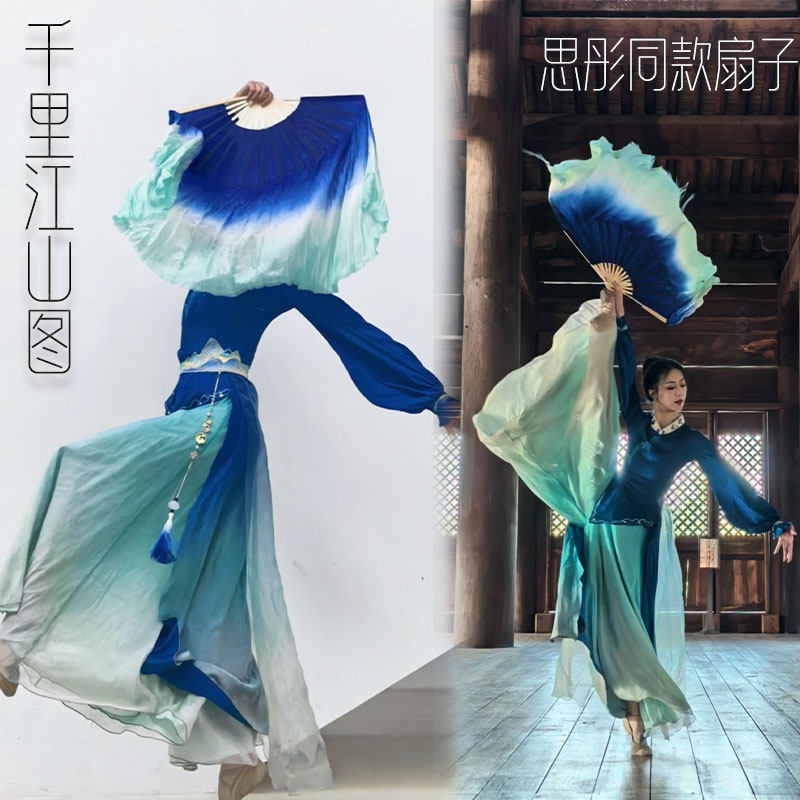 思彤原版千里江山图舞蹈扇跳舞古典舞长绸扇表演广场舞一条大河