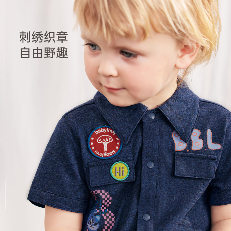 babylove宝宝连体衣夏季薄款纯棉婴儿牛仔哈衣短爬时尚潮酷外出服