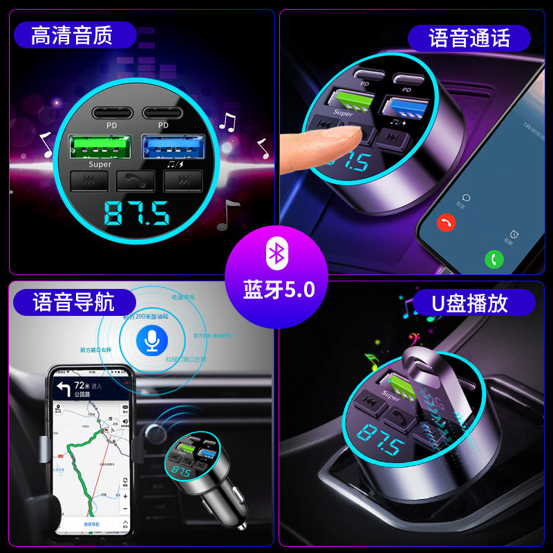 新款车载蓝牙接收器无损音质mp3播放器车载充电器超级快充