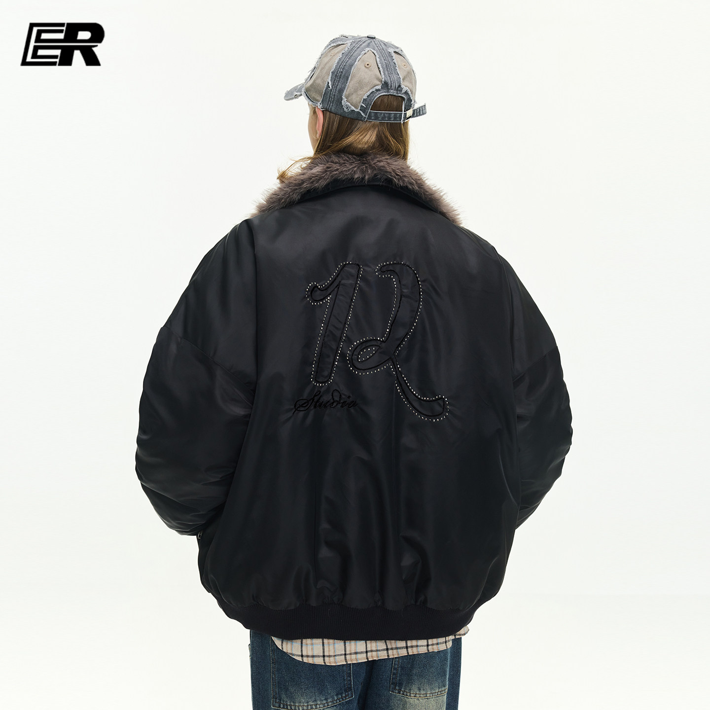 【明星同款】ER刺绣贴钻真两件毛领羽绒服可拆卸内胆座山雕外套