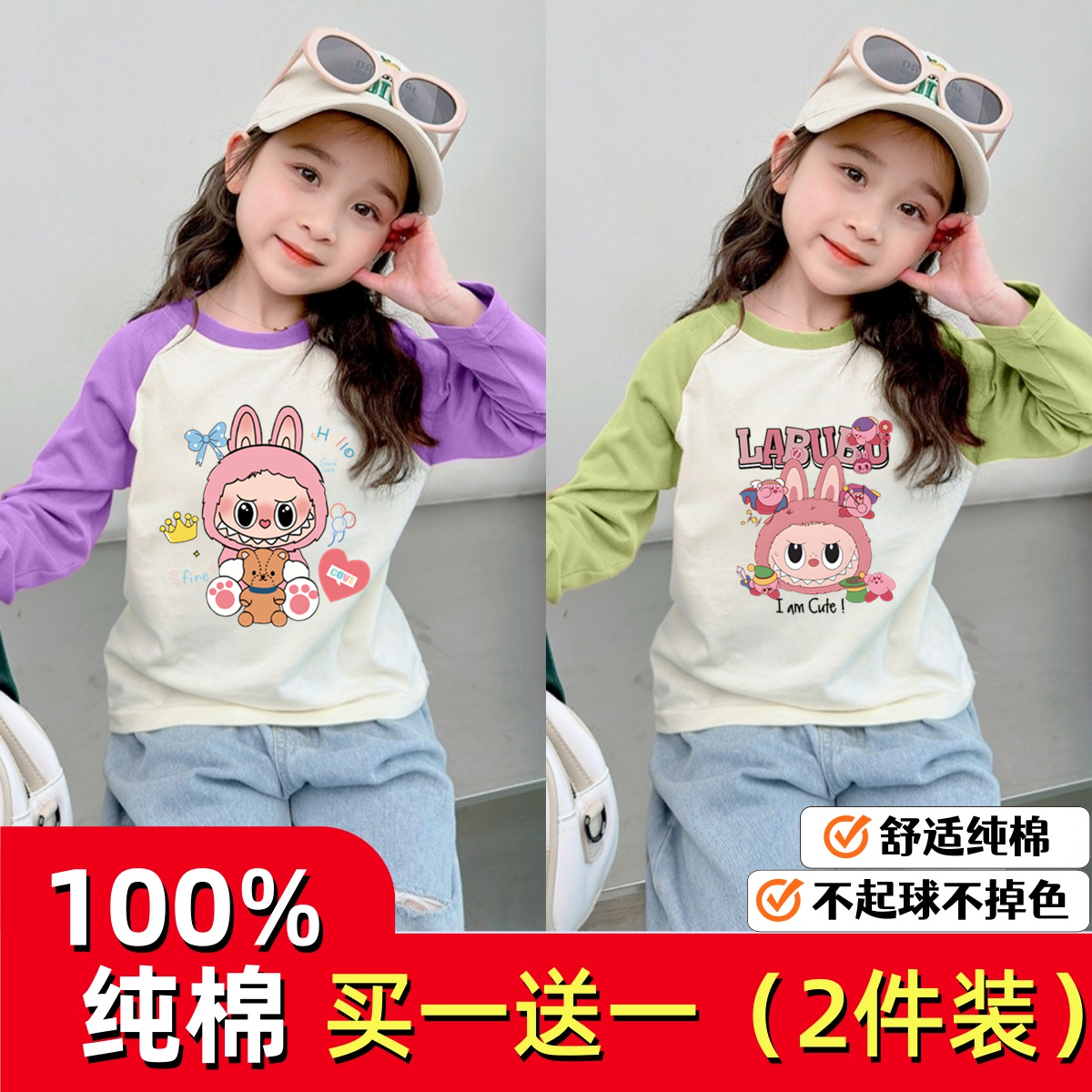 拉布布儿童纯棉长袖T恤男女童春秋打底衫2025新款宝宝洋气上衣潮t