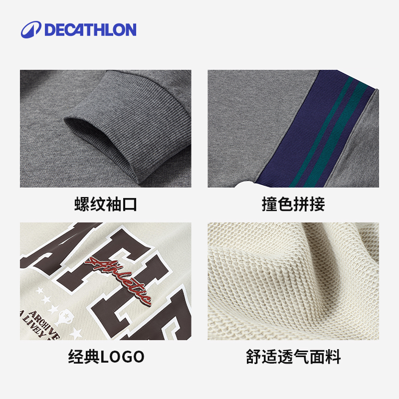 迪卡侬SPW367212运动卫衣春季宽松落肩休闲复古美式卫衣清仓SAX3