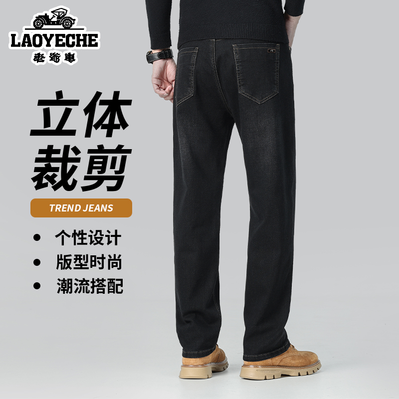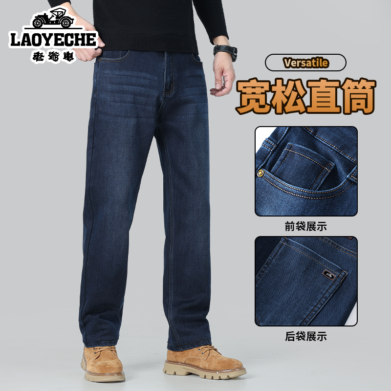 老爷车时尚牛仔裤男士2025秋冬季新款厚款中年爸爸装商务休闲长裤