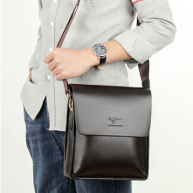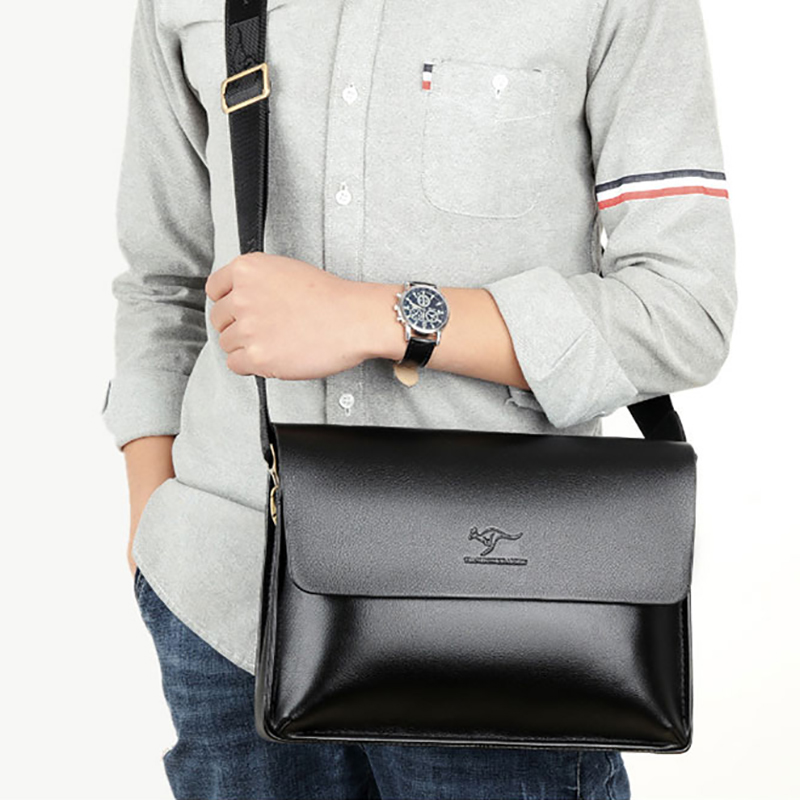2025新款男士单肩包真皮商务横款公文背包大容量翻盖a4牛皮斜挎包