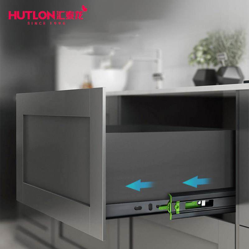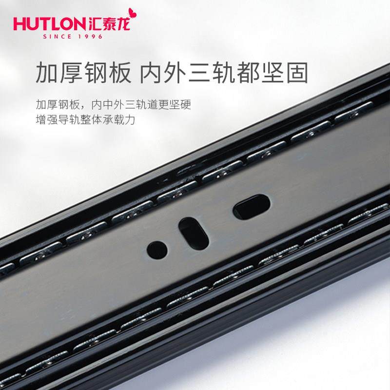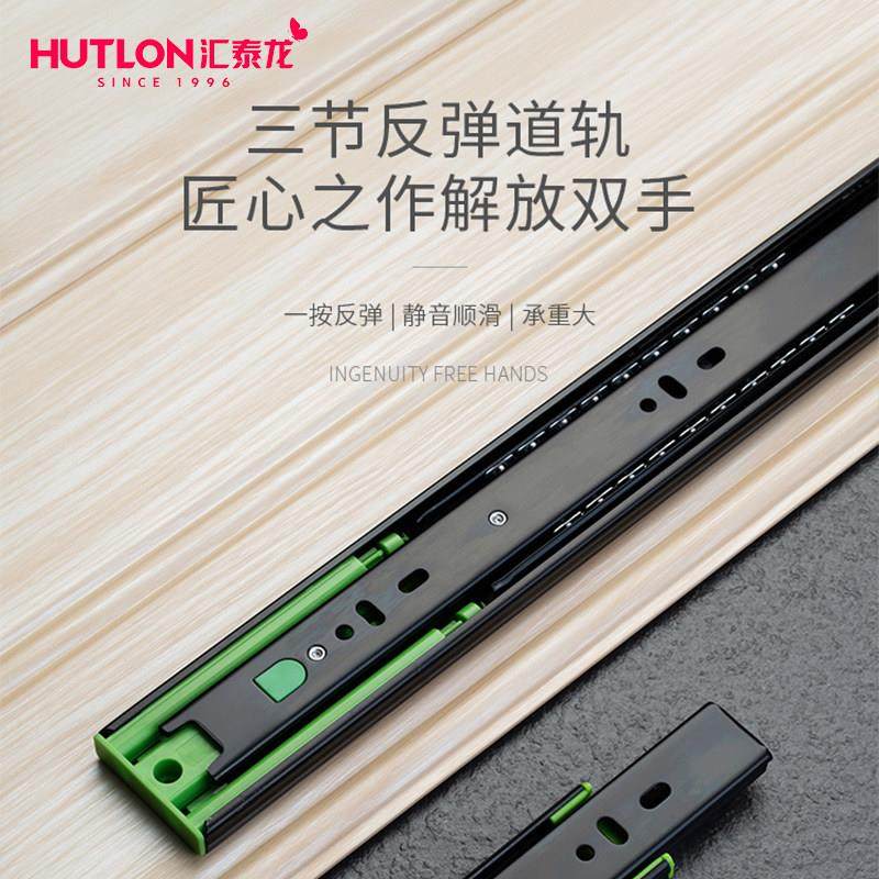 汇泰龙反弹抽屉轨道三节轨加厚静音顺畅导轨滑道反弹滑轨