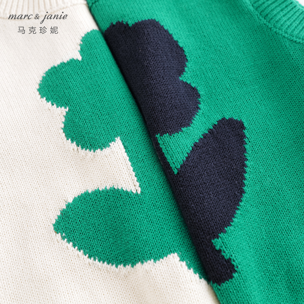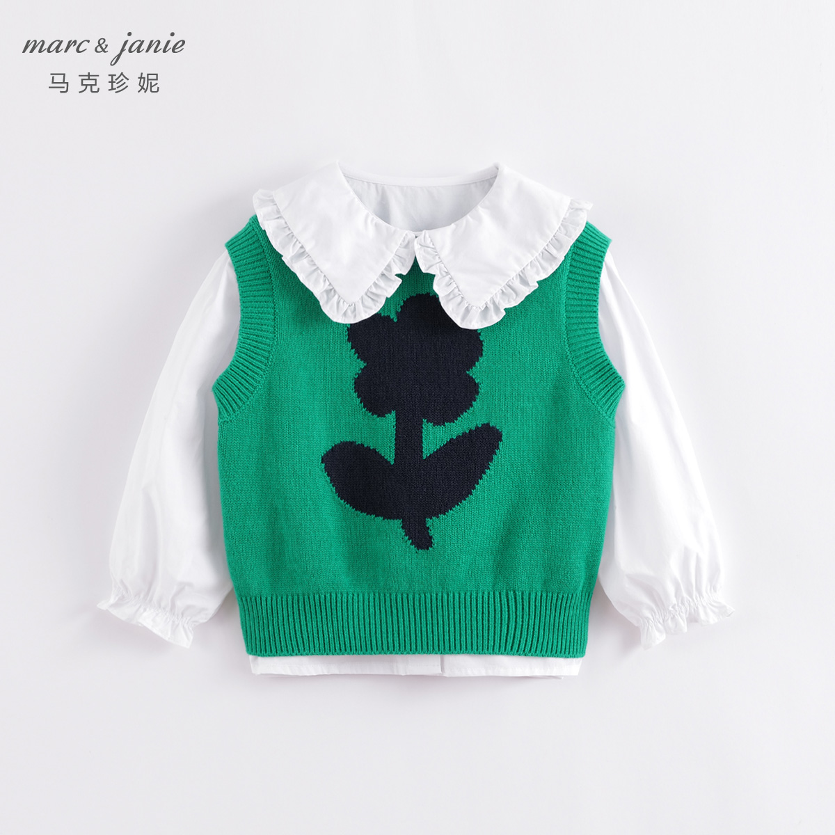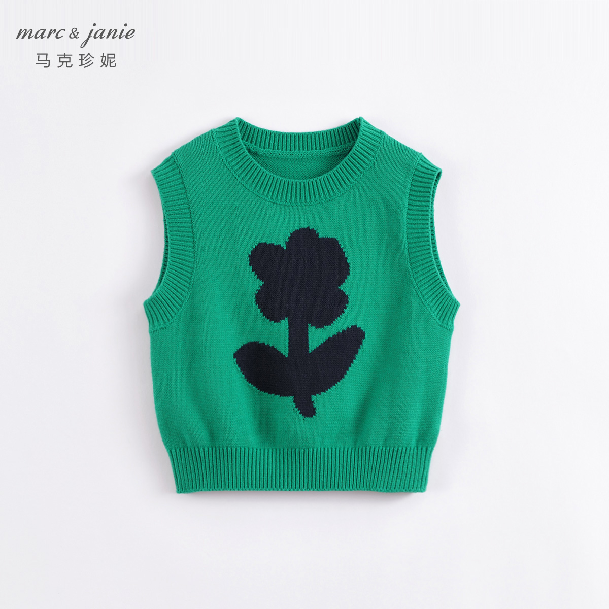 马克珍妮女童撞色小花针织马甲