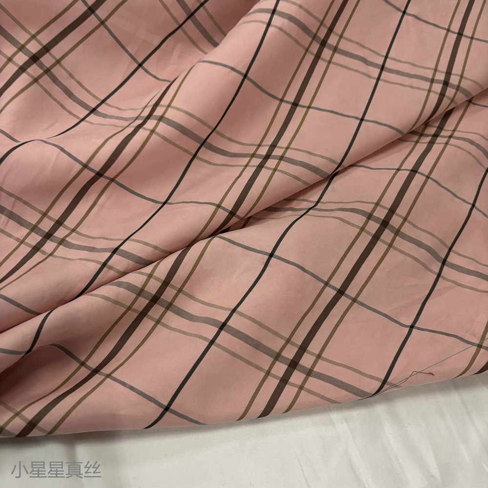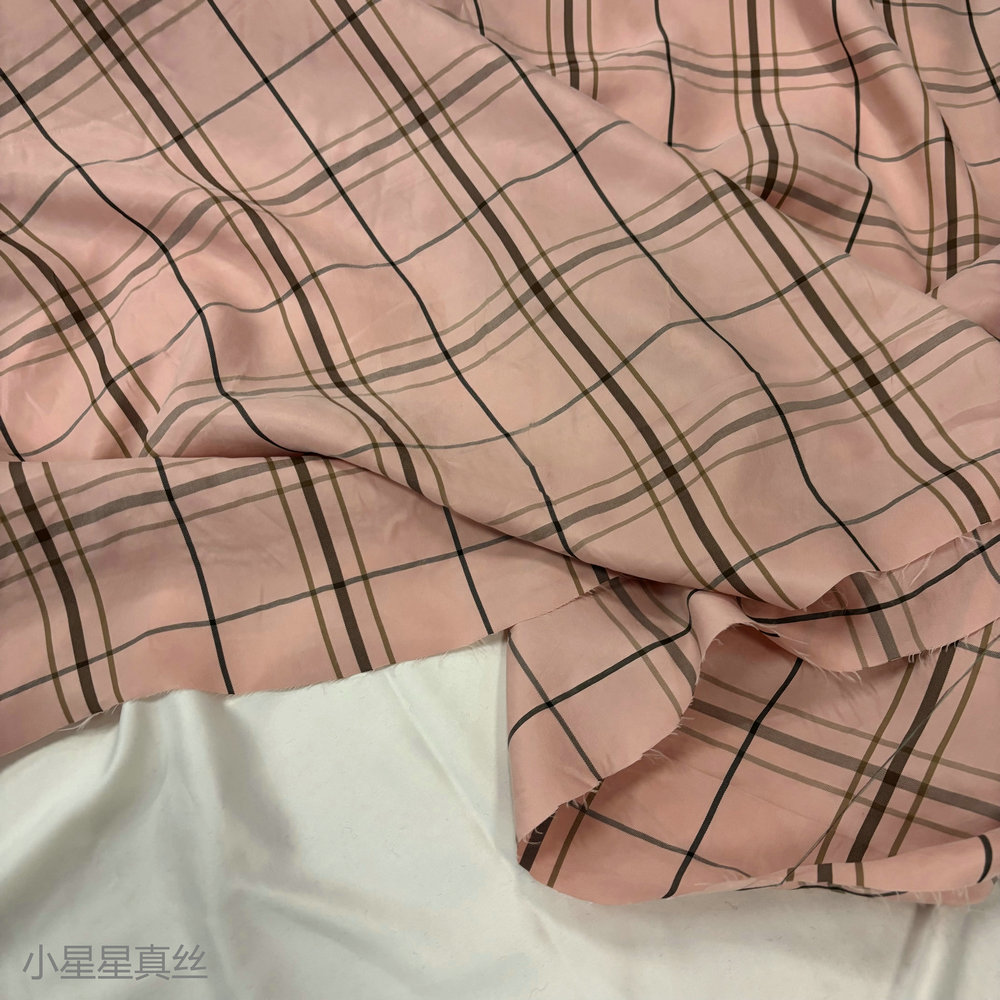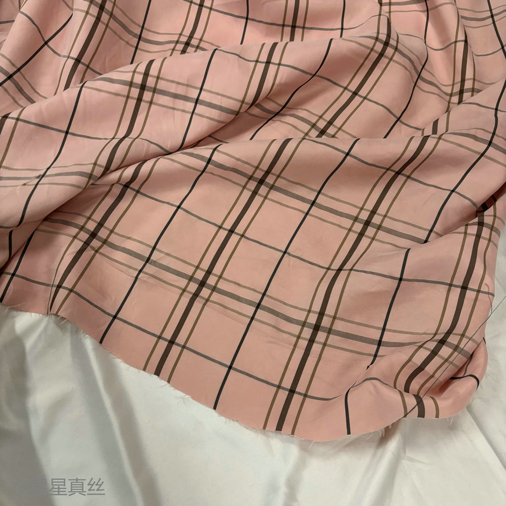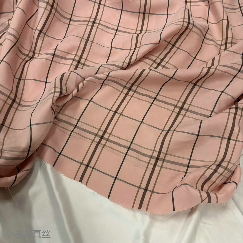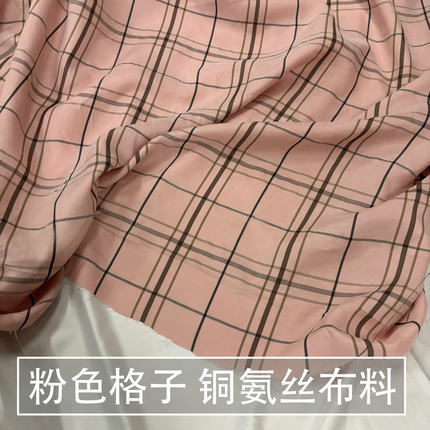 粉色格子 重磅砂洗铜氨丝面料垂坠手工diy布料裤子衬衫连衣裙夏季
