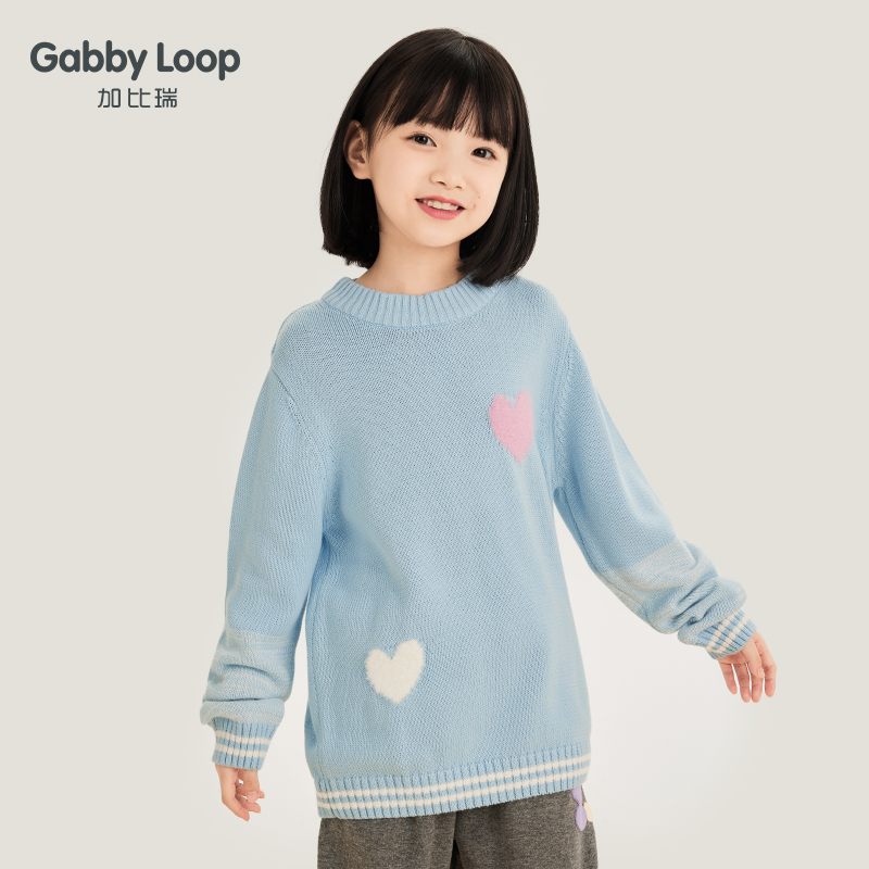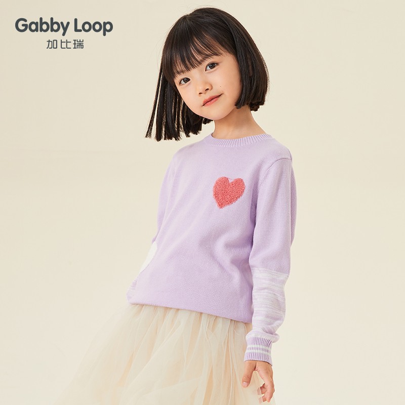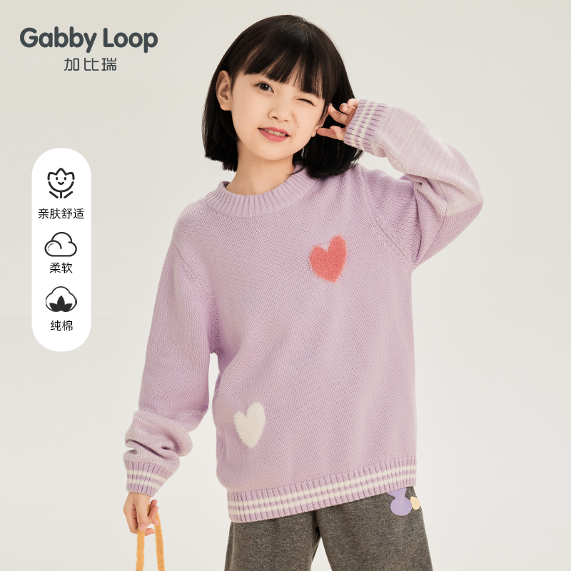 加比瑞女童毛衣针织衫春秋线衫儿童打底衫纯棉薄秋季上衣粉色线衣