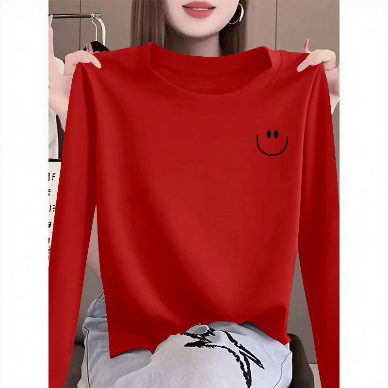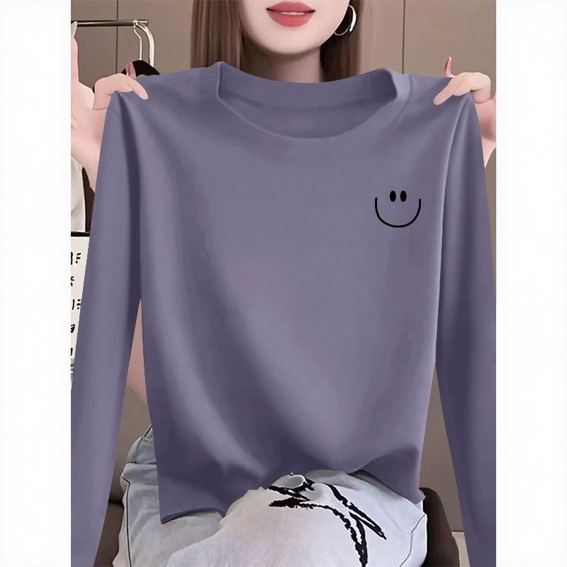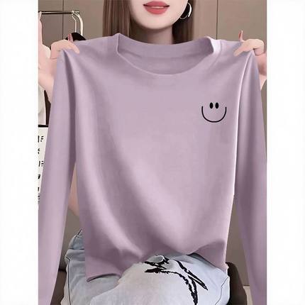 春秋纯棉女装长袖圆领T恤时尚新款韩版洋气通勤百搭宽松显瘦上衣