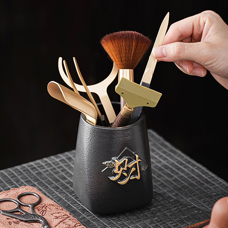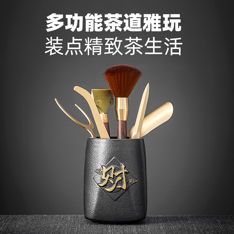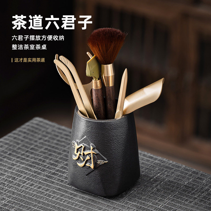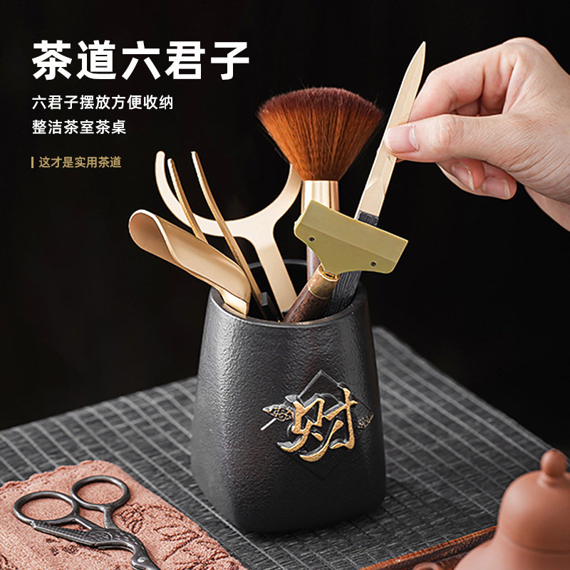 茶道六君子套装黄铜茶具配件茶洗茶则茶刀茶垫茶水桶泡茶用品大全