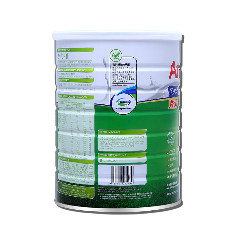 保税仓 港版安怡Anlene长青中老年奶粉高钙低脂无蔗糖1700g51岁+