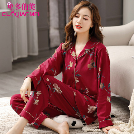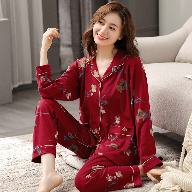 纯棉睡衣女士新款红色本命年妈妈居家服套装春秋款中老年人秋冬季