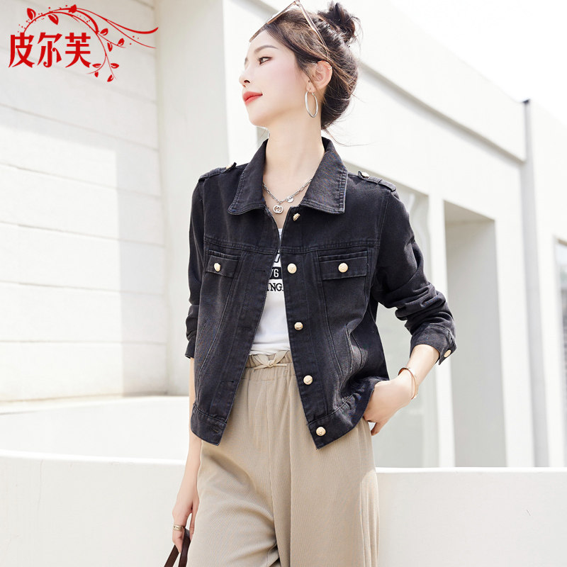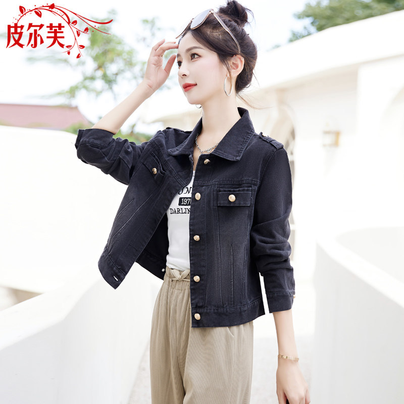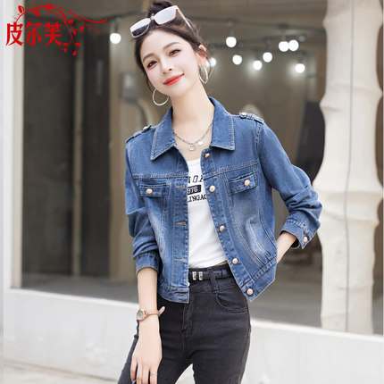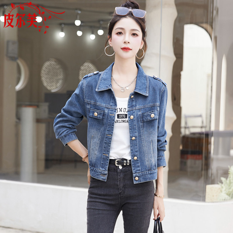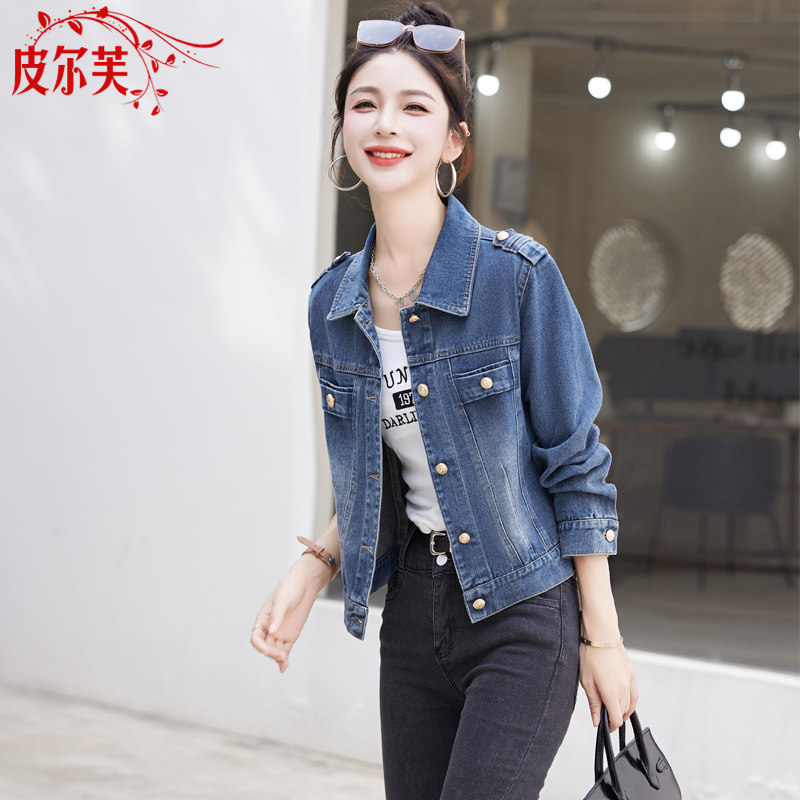 牛仔短外套女2024春秋季新款修身显瘦POLO领长袖夹克女生上衣褂子