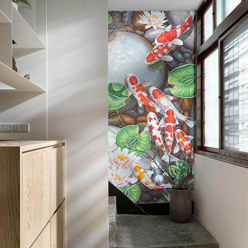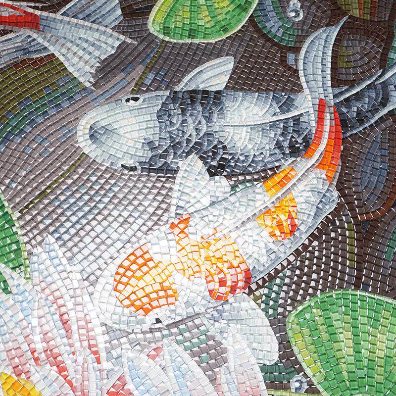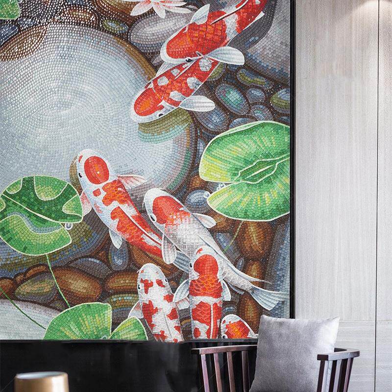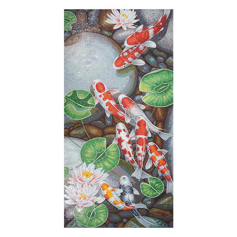 九鱼图水晶玻璃马赛克剪画客厅玄关拼图拼花瓷砖背景墙定制壁画