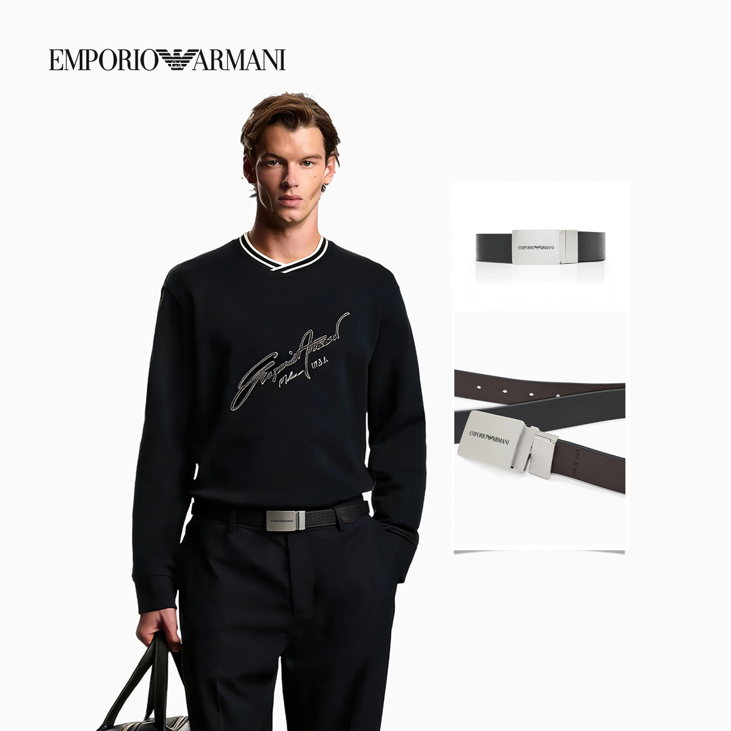 EMPORIO ARMANI/阿玛尼春夏男女情侣商务双面板扣腰带皮带礼物