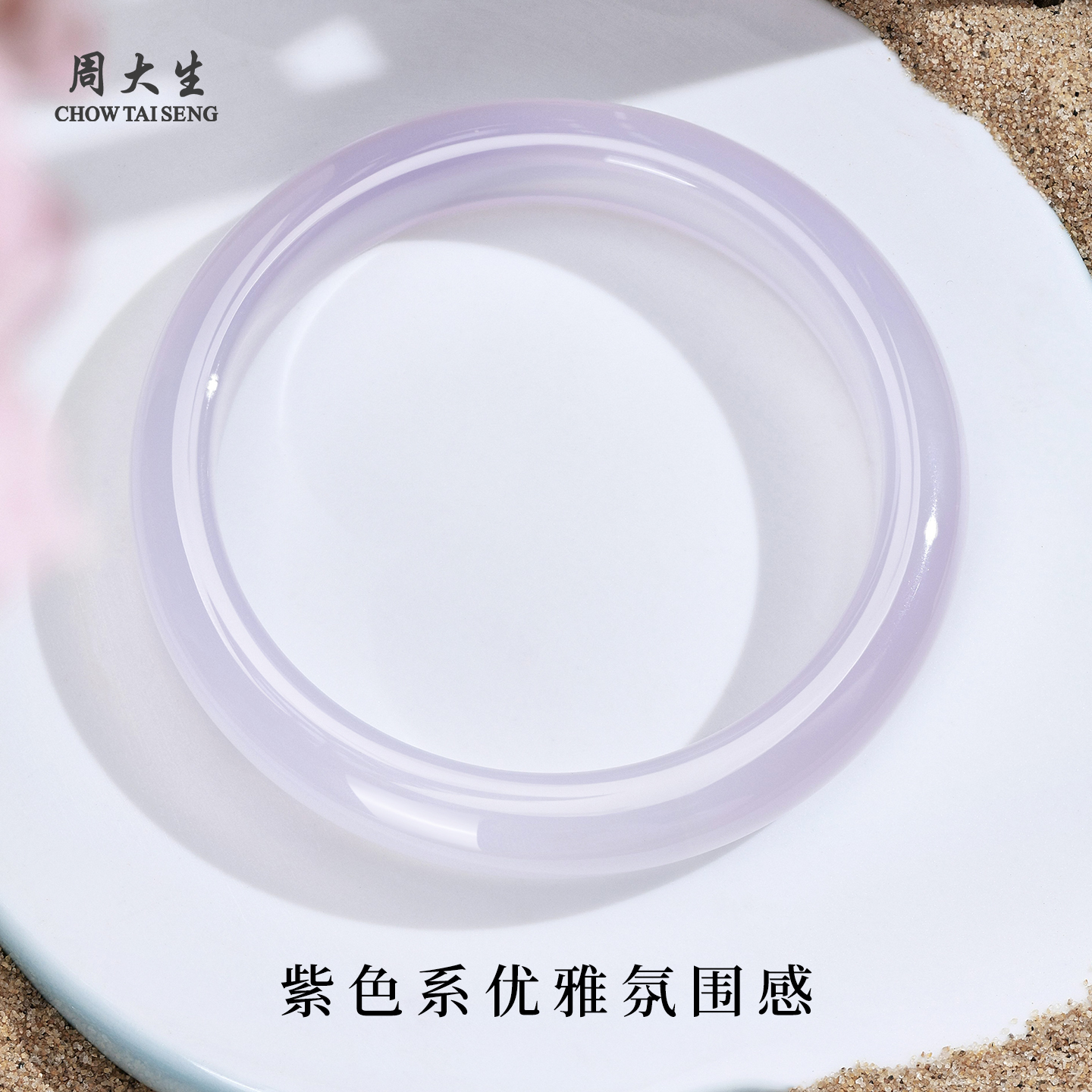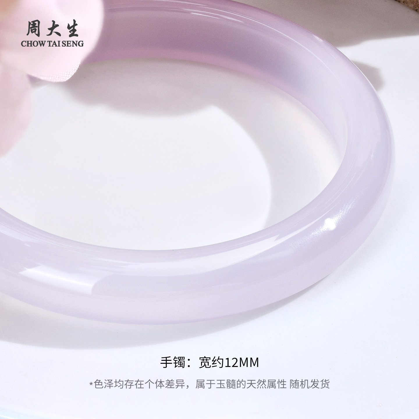 周大生官方浪漫紫罗兰玉髓手镯玉镯平安镯国风首饰生日礼物送女友