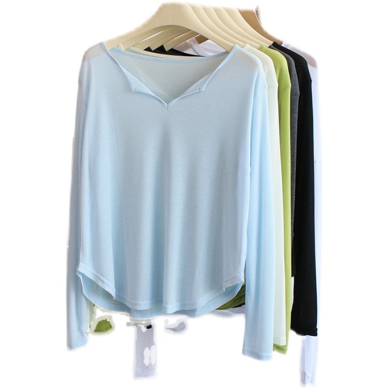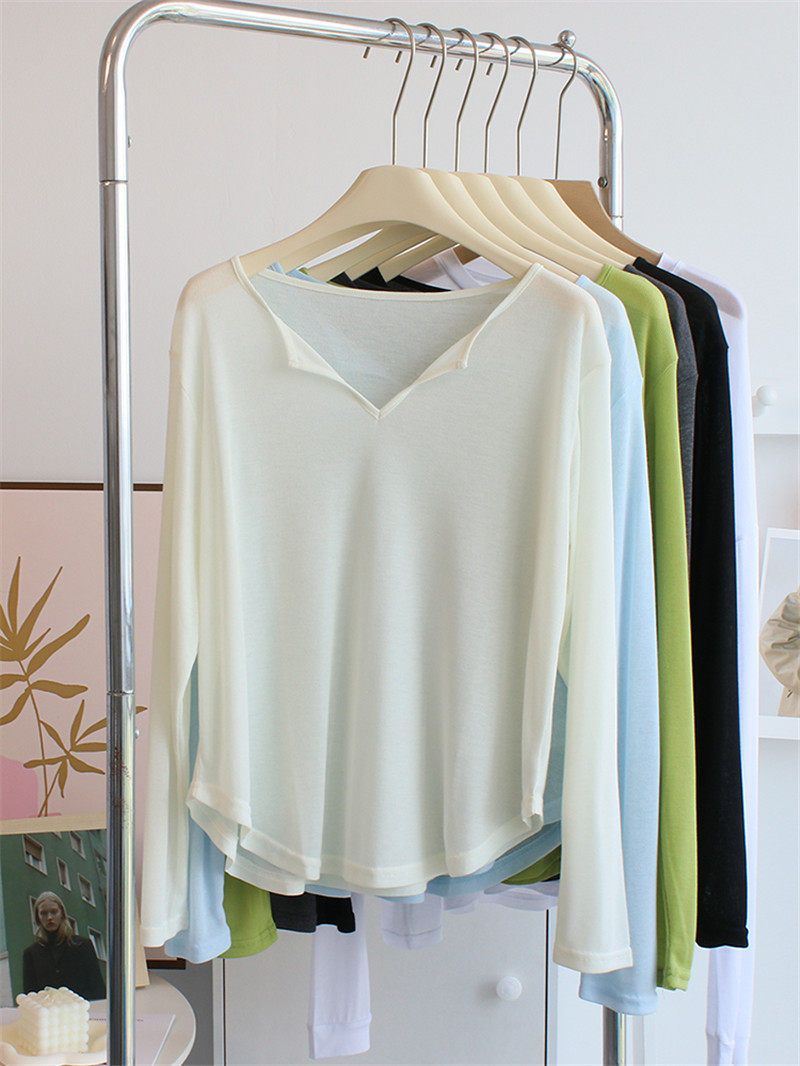 薄款微透半开领长袖t恤女夏宽松防晒衣罩衫瑜伽服上衣练功舞蹈服