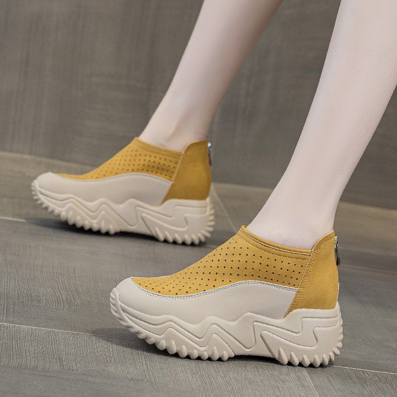 真皮内增高老爹凉鞋女2025新款春夏季镂空洞洞休闲运动鞋坡跟单鞋