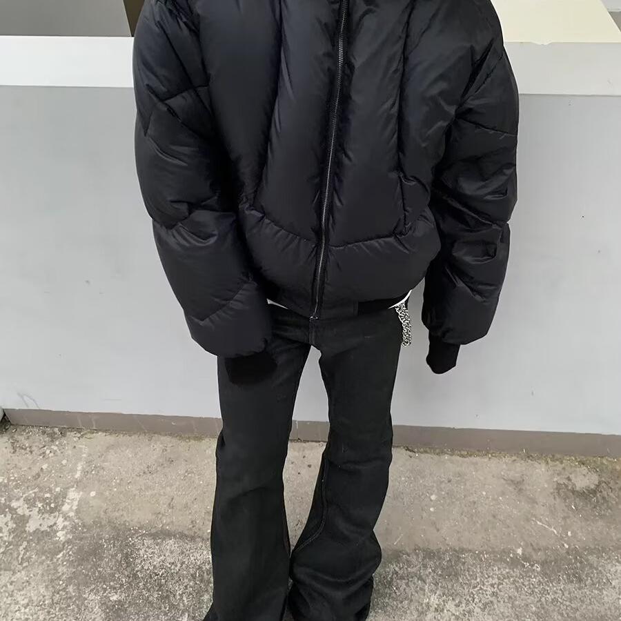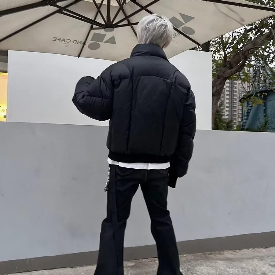 2024冬季新款棉服男加厚外套小众设计黑色立领面包服美式黑色盔甲