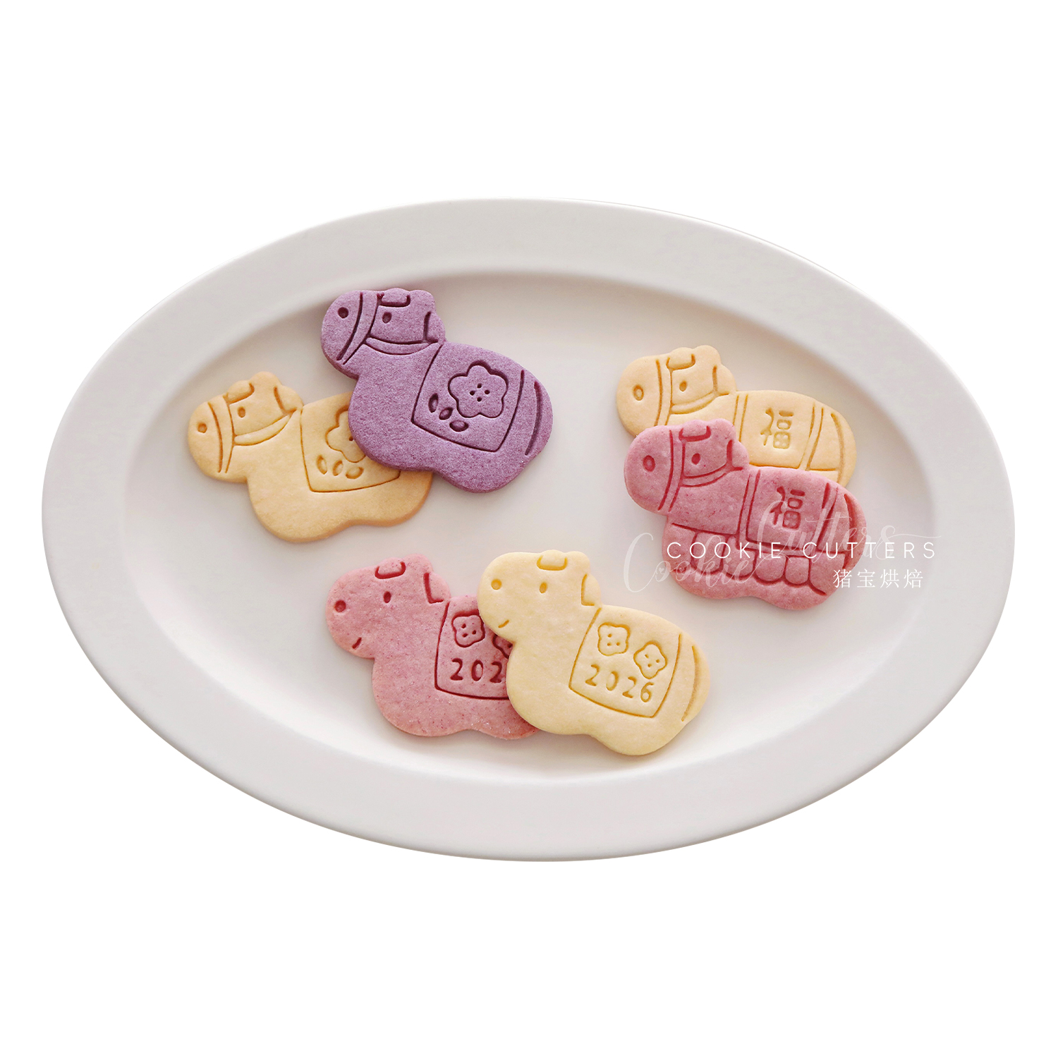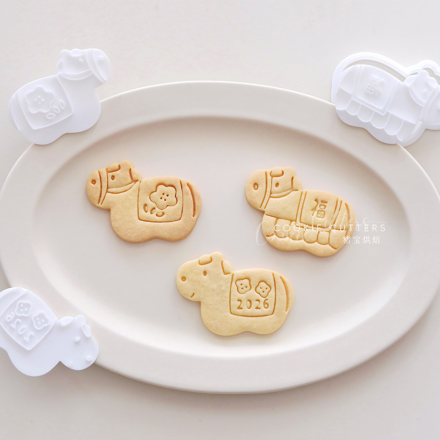 新款026卡通福马饼干模具春节好运桃花马年福字小马翻糖曲奇工具