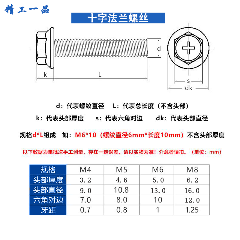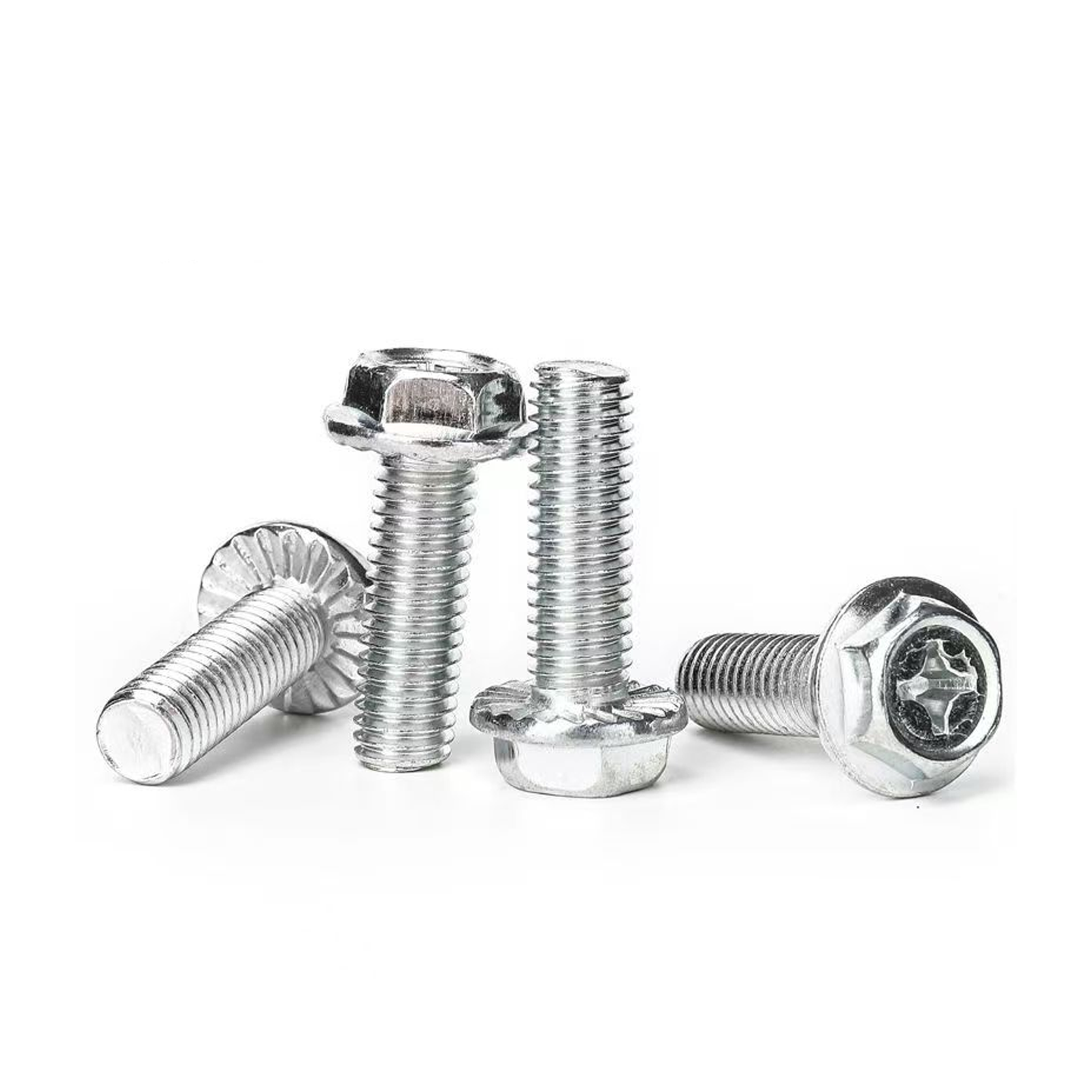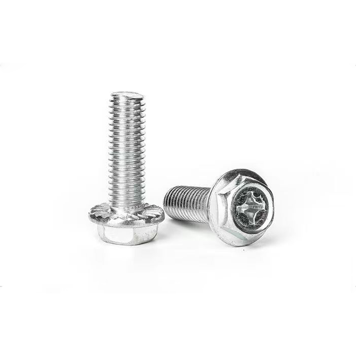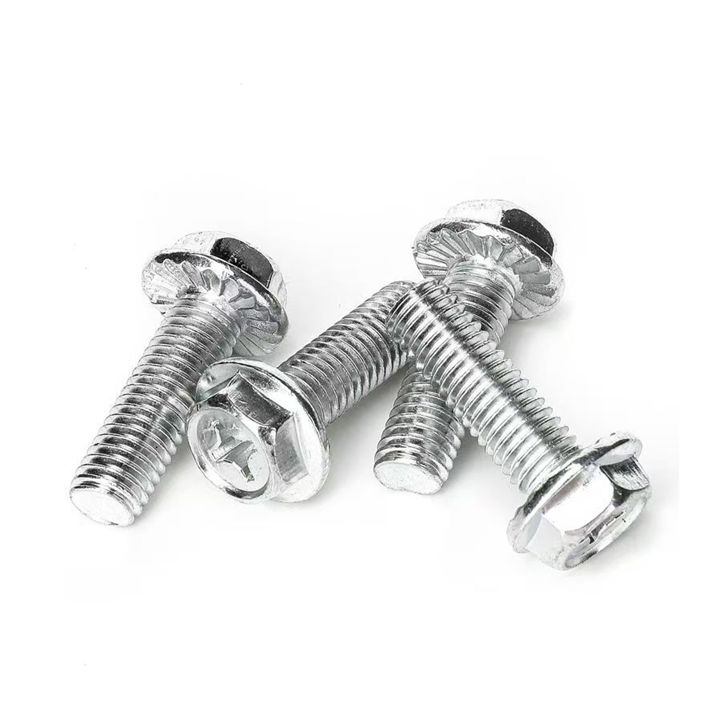 4.8级镀锌十字法兰面螺丝外六角带垫防松防滑螺钉螺栓 M4M5M6M8mm