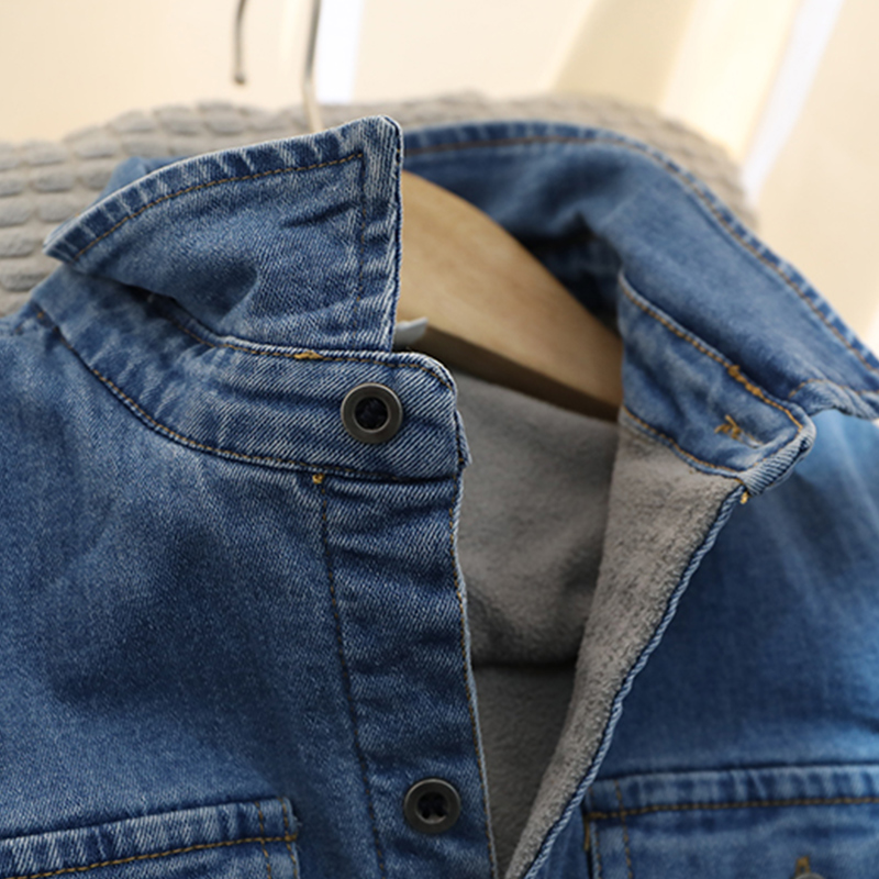 软糯加厚~ 秋冬款男童牛仔加z绒衬衫中童打L底长袖衬衣宝宝保暖外