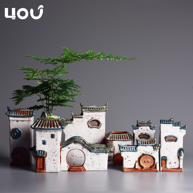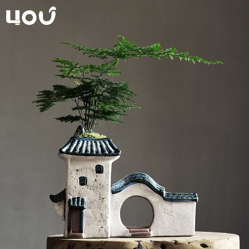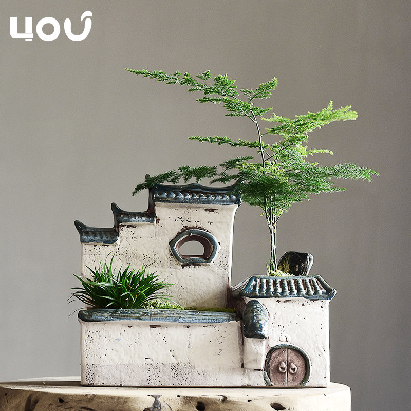 中国风房子造景文竹专用花盆陶瓷创意家用微景观菖蒲多肉植物花盆