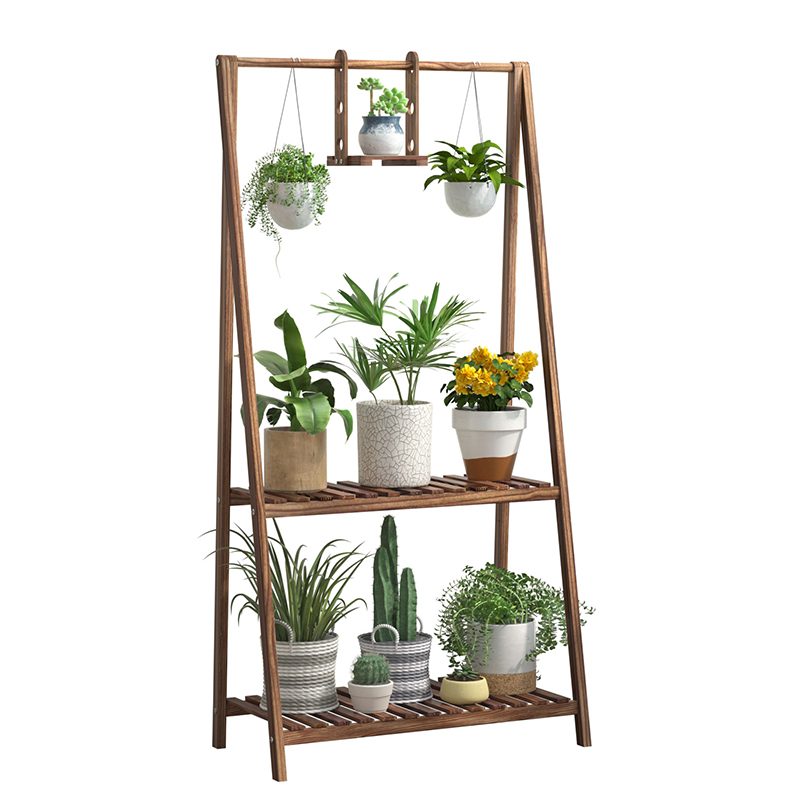 室内实木质吊兰花架子户外碳化防腐花盆绿萝多肉架客厅落地置物架