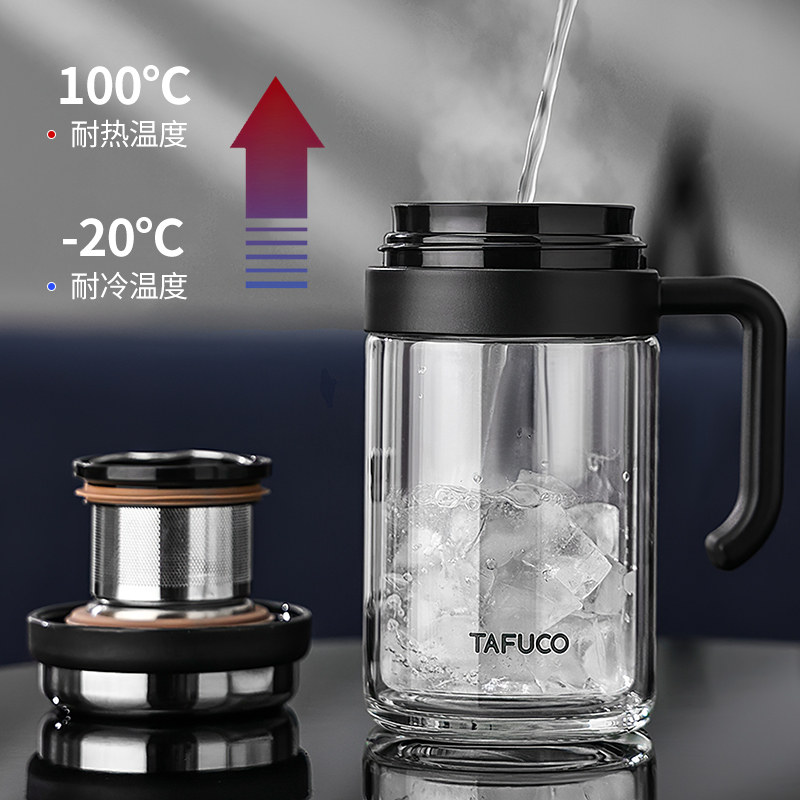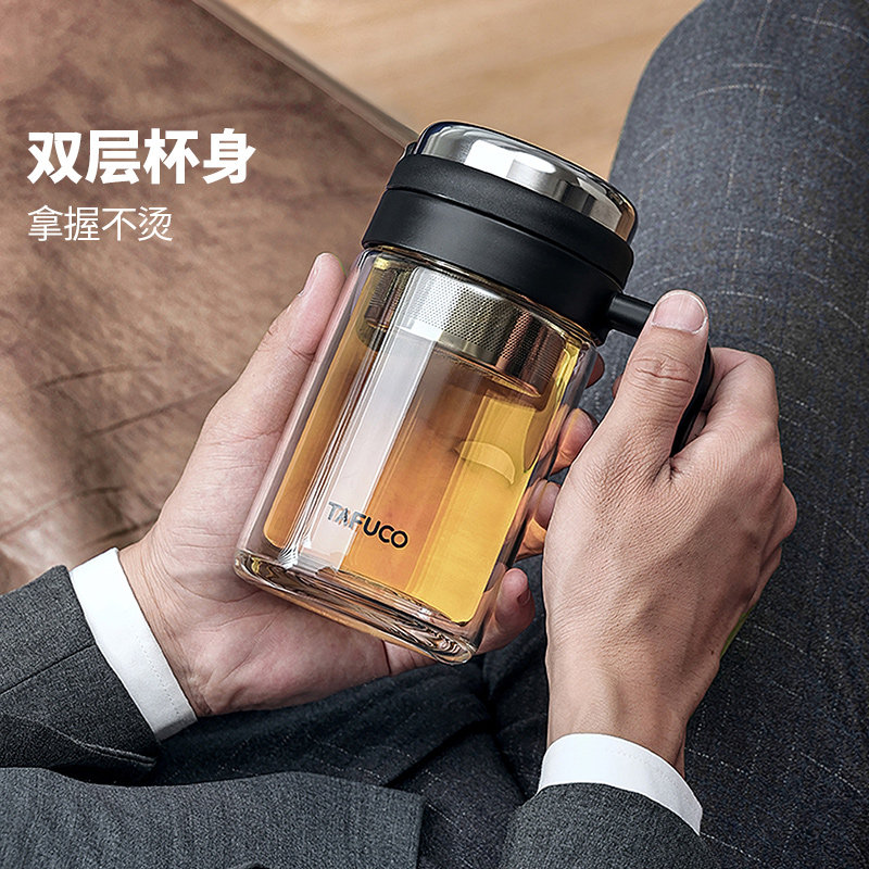 【自营】泰福高茶水分离杯泡茶杯商务耐热玻璃杯子隔热过滤水杯