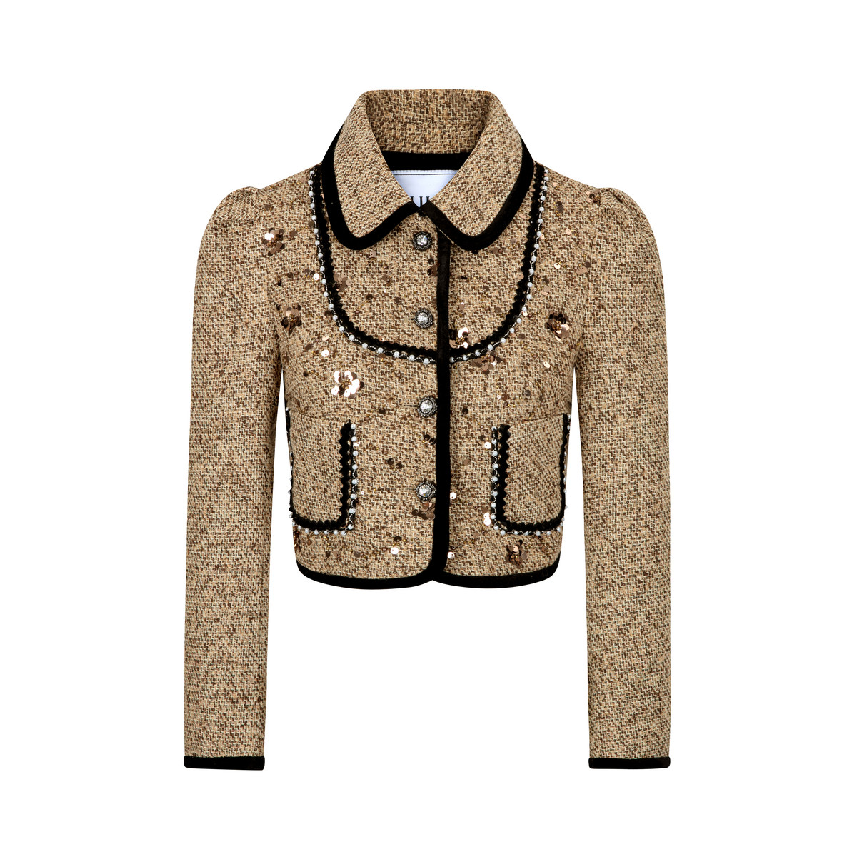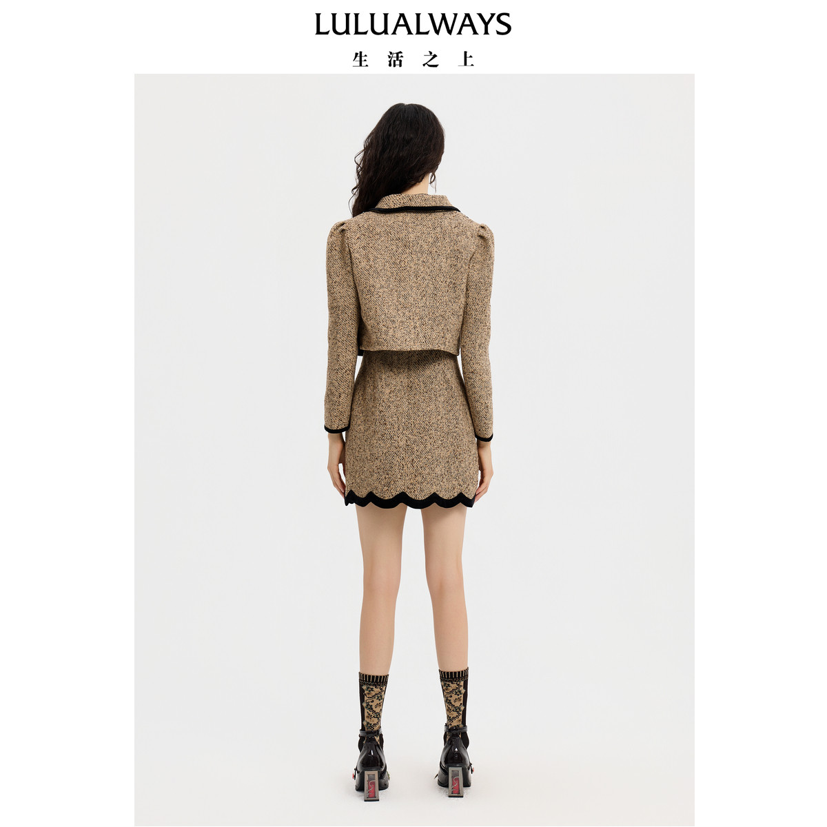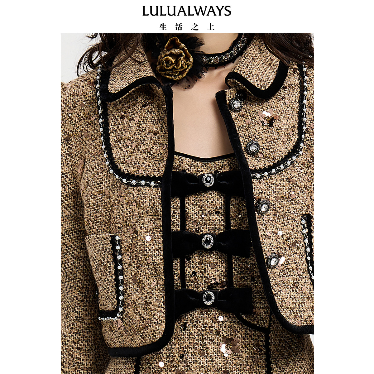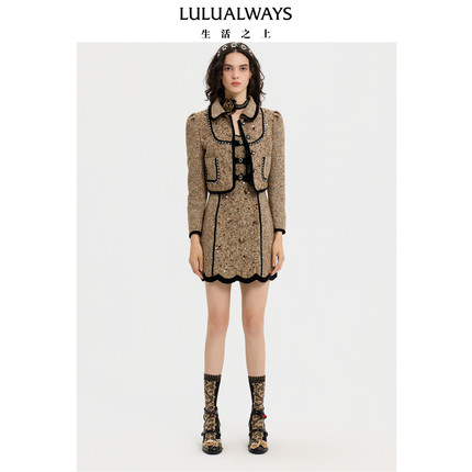 LULUALWAYS【商场同款】25冬季新款复古甜美小香风翻领短亮片外套