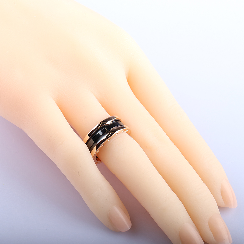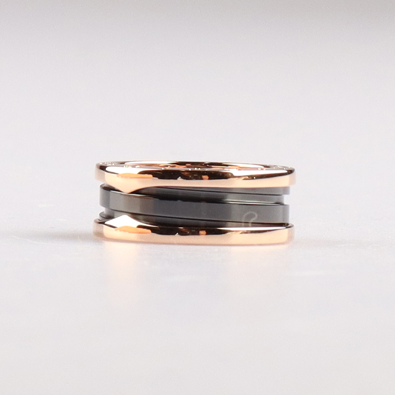中古95「新」宝格丽BZERO1黑色陶瓷二环750玫瑰金54号戒指休闲