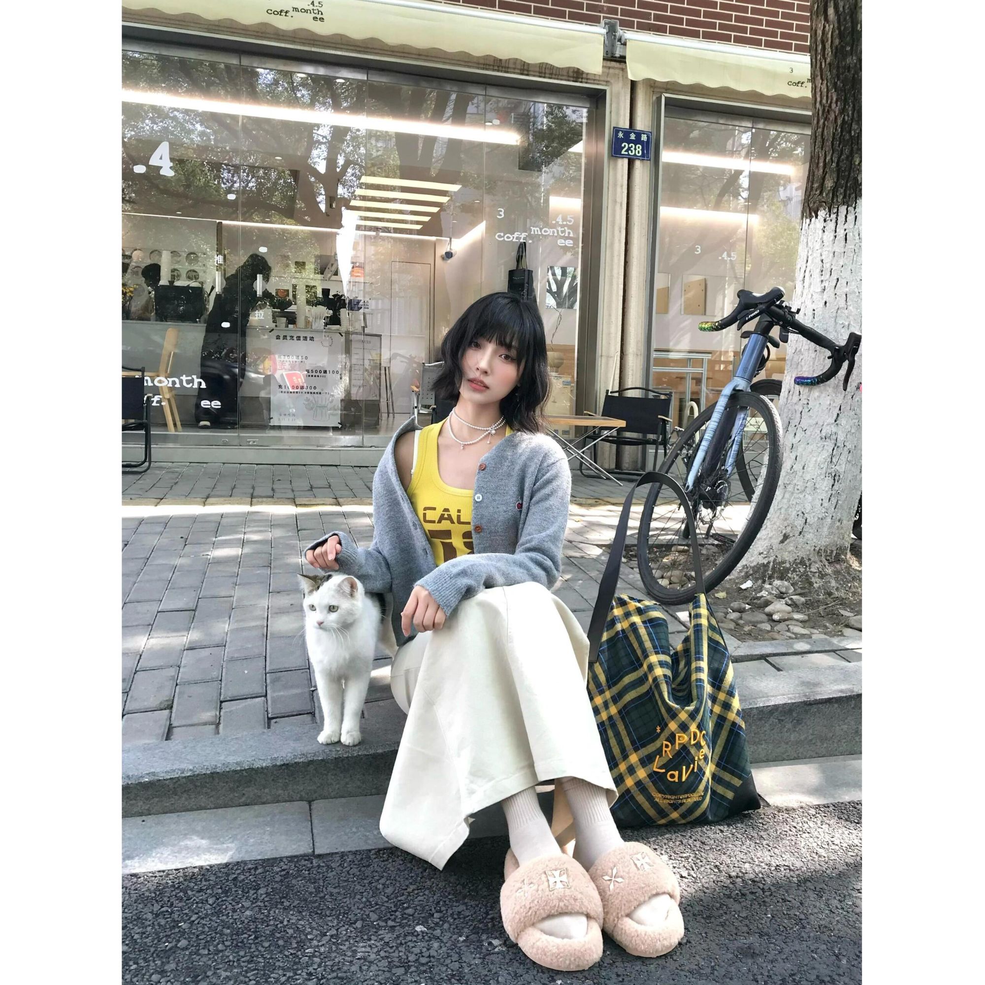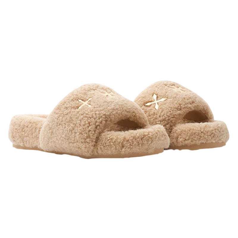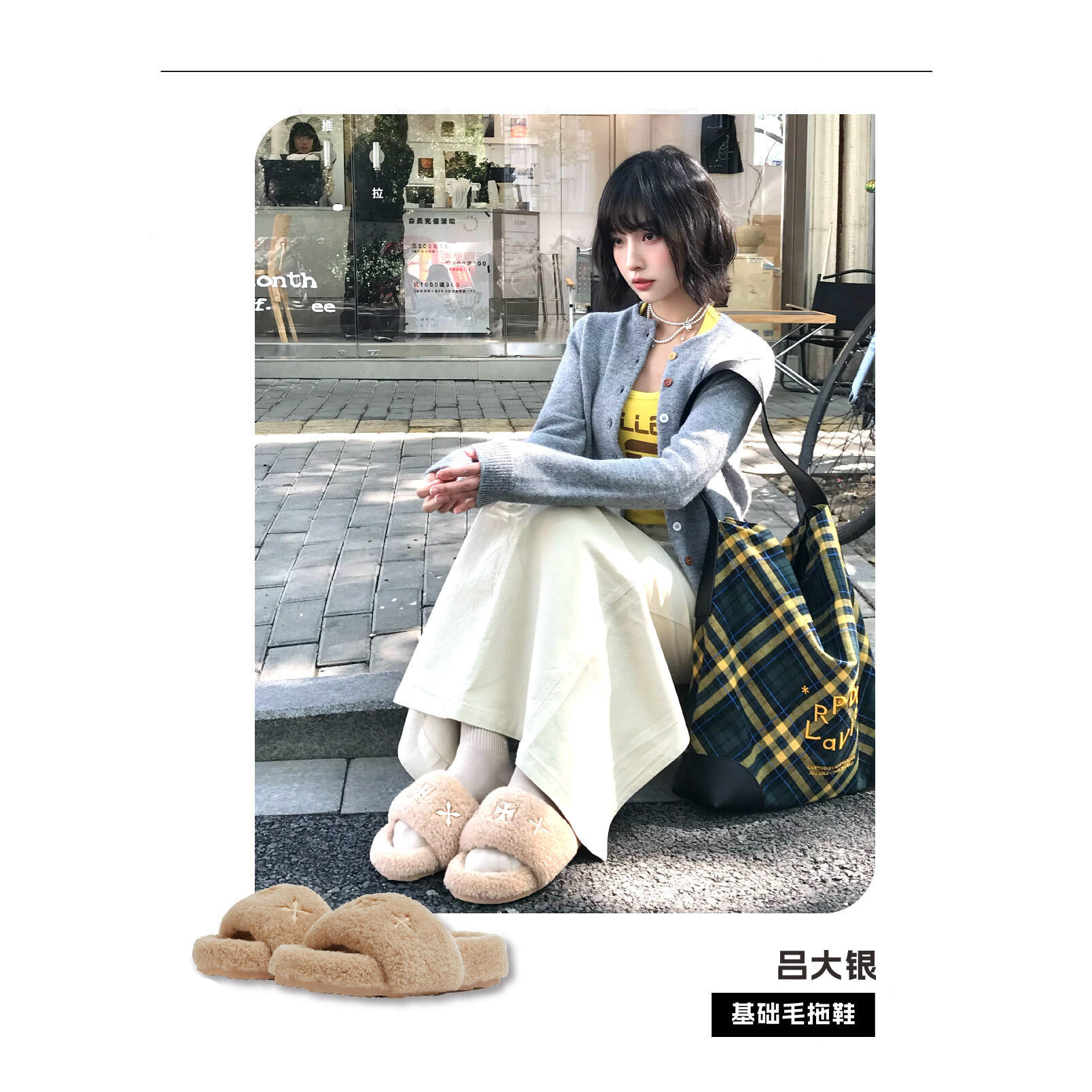 赵露思同款毛毛拖鞋真羊毛女款外穿厚底羊羔毛复古休闲一字拖棉拖