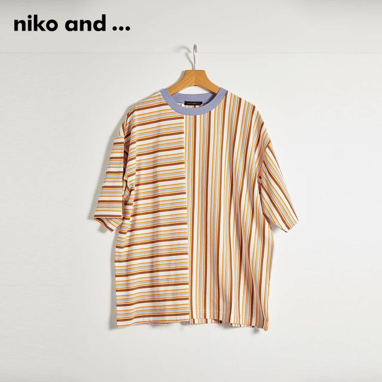 niko and ...T恤男夏季新款时尚潮流拼接条纹撞色短袖967165