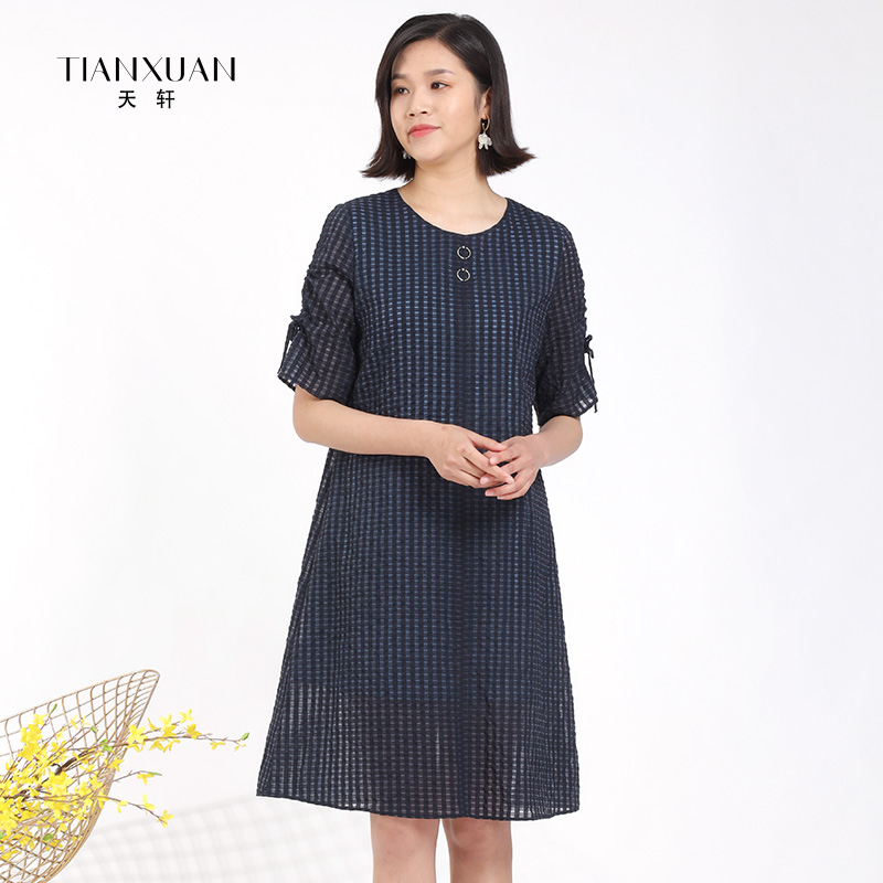 天轩商场同款夏季女新款圆领连衣裙宽松版型棉质舒适面料TGXD088