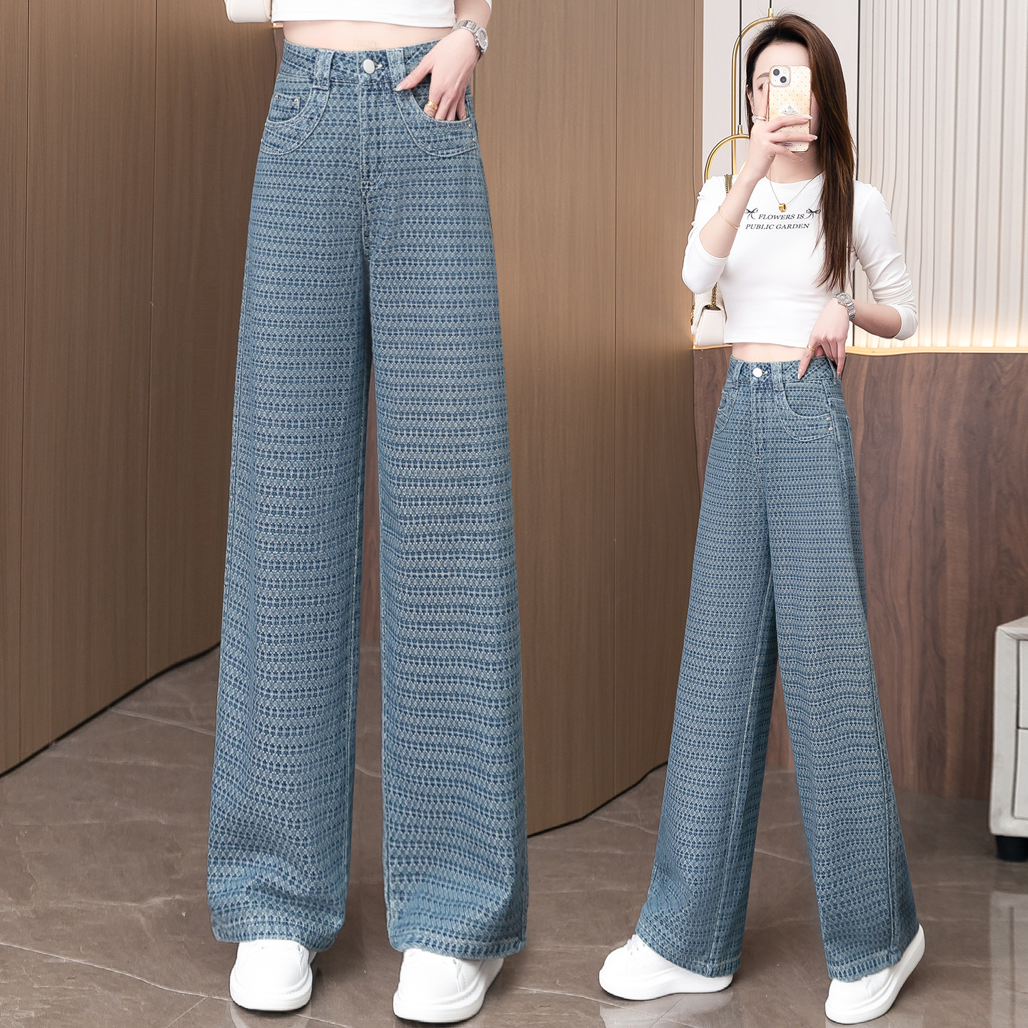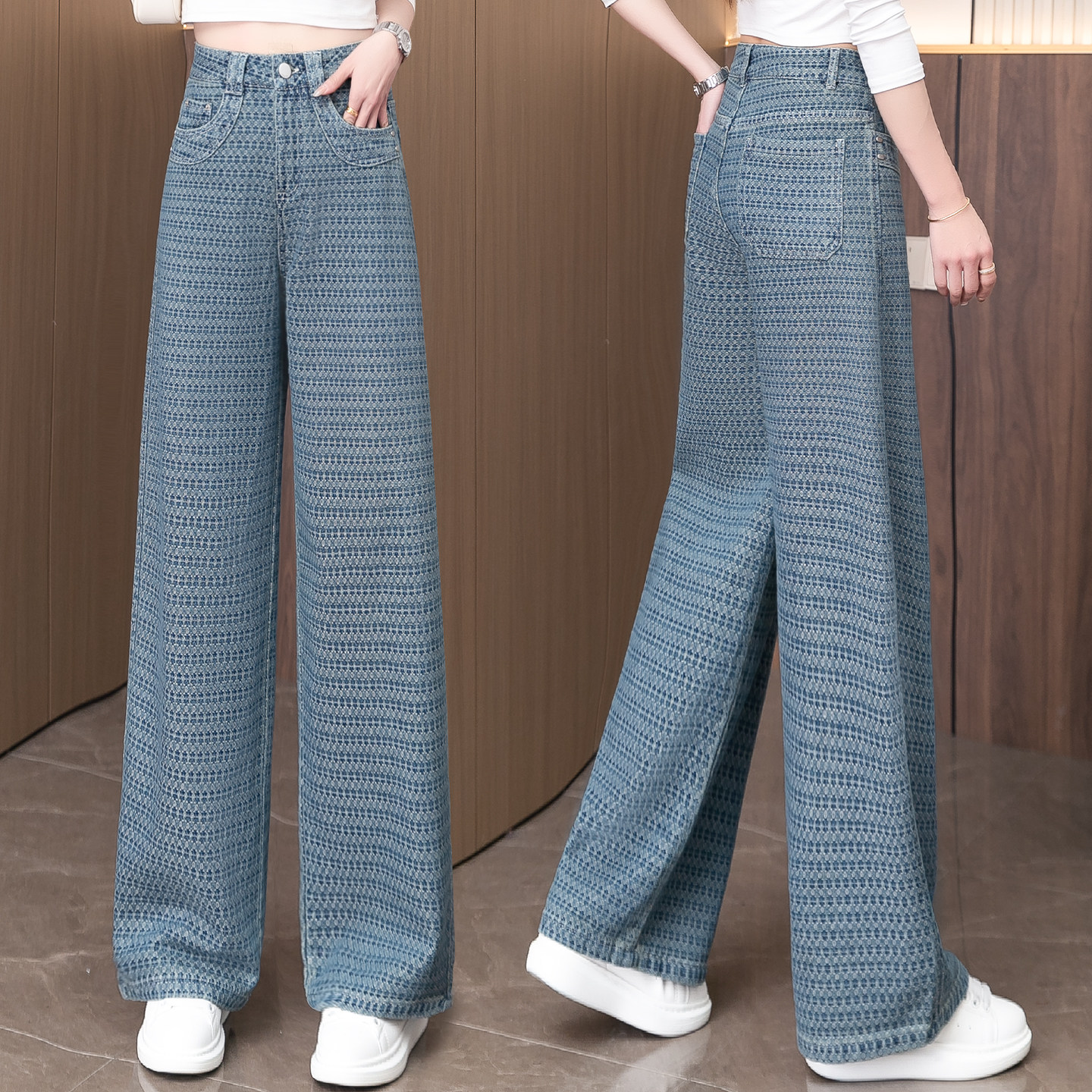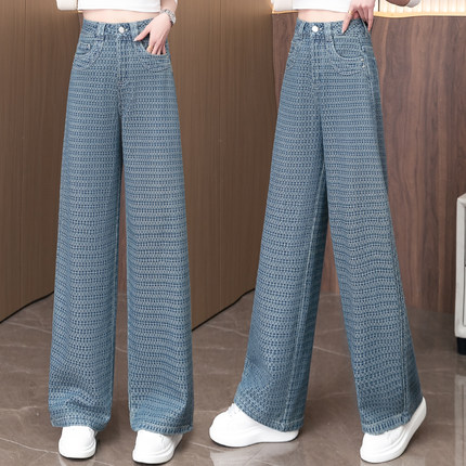 复古提花阔腿牛仔裤女超火花纹
