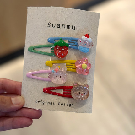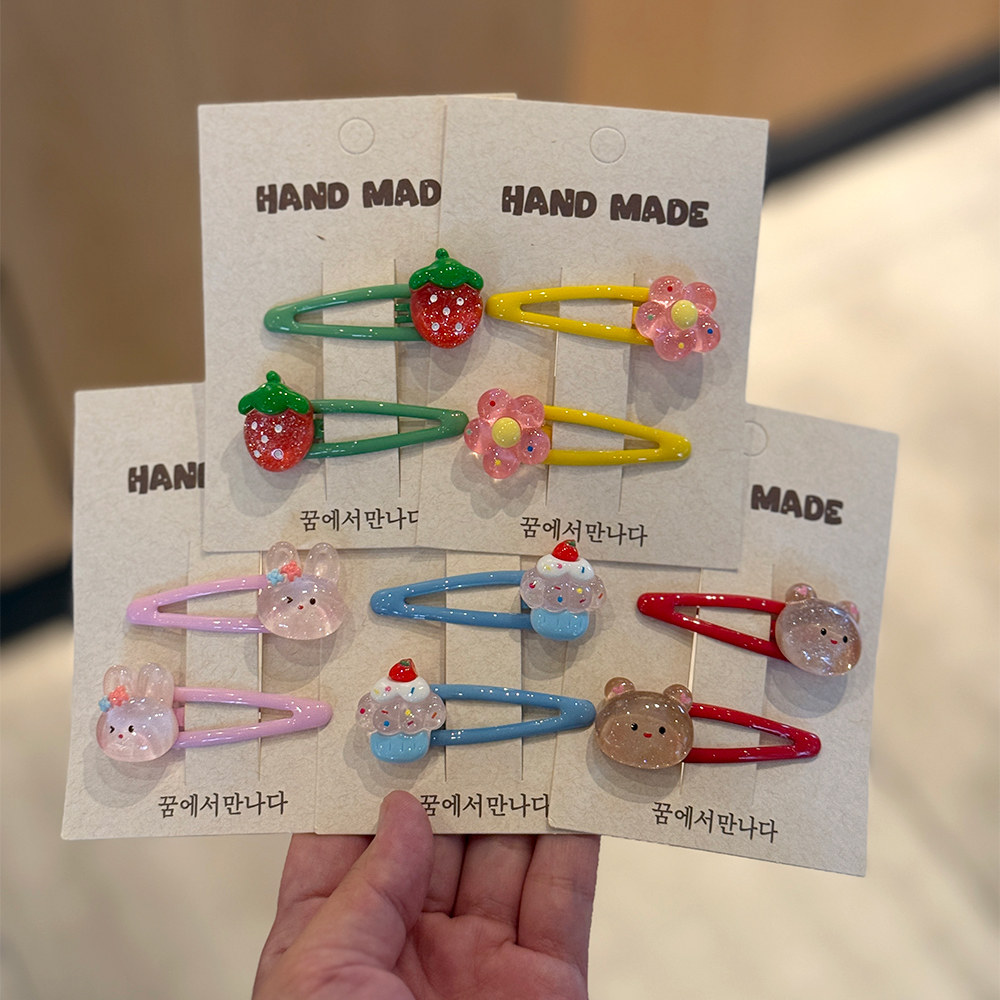 可爱糖果色卡通小兔花朵发夹女童碎发刘海侧边夹儿童bb夹小熊头饰