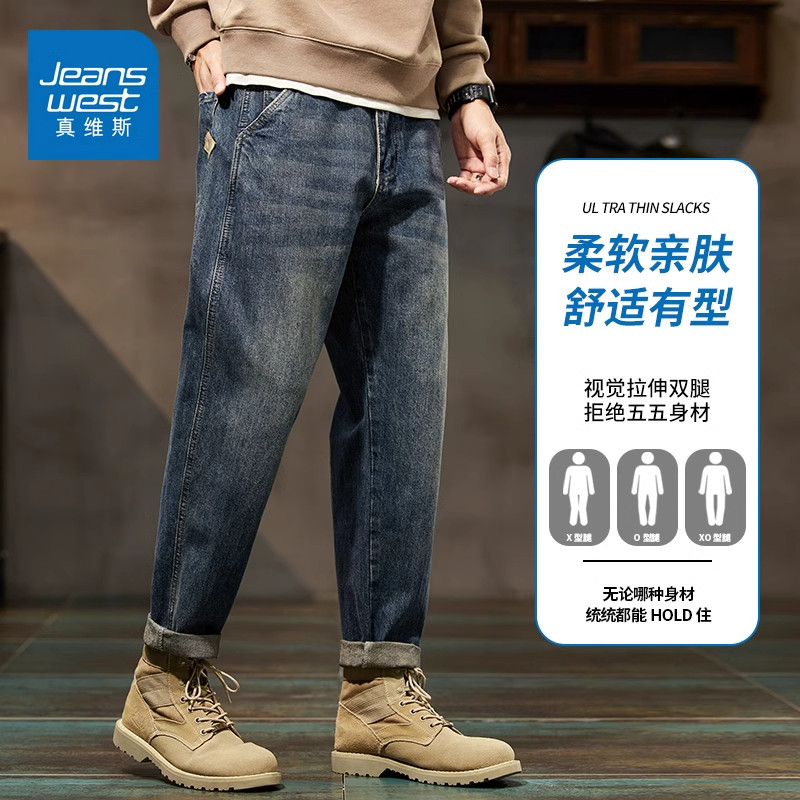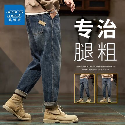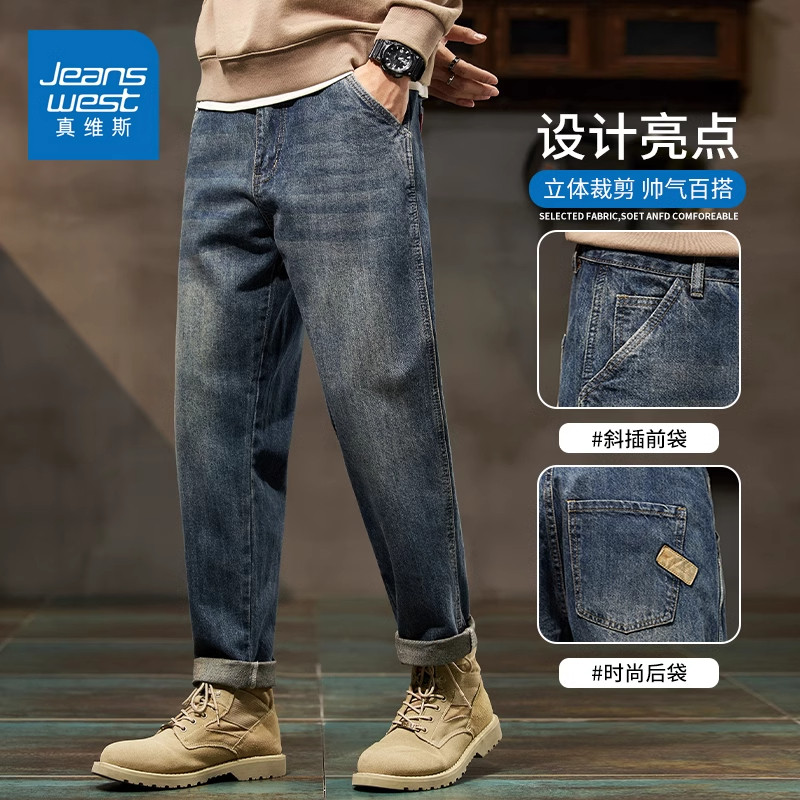 真维斯男士锥形牛仔裤秋冬季宽松美式复古百搭工装男装休闲长裤子