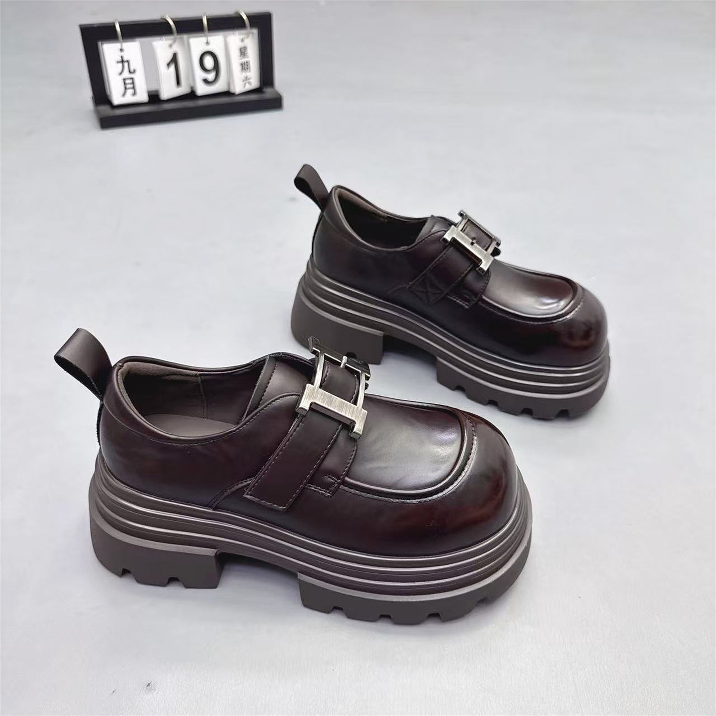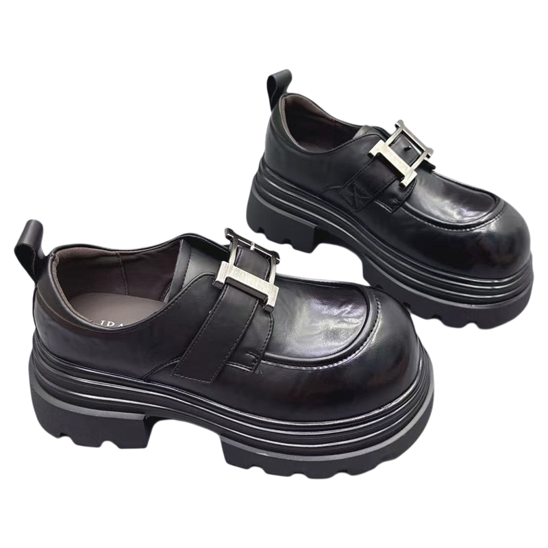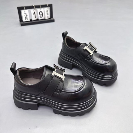 2025新款高级感真皮英伦小皮鞋厚底增高单鞋圆头丑萌鞋低帮休闲鞋