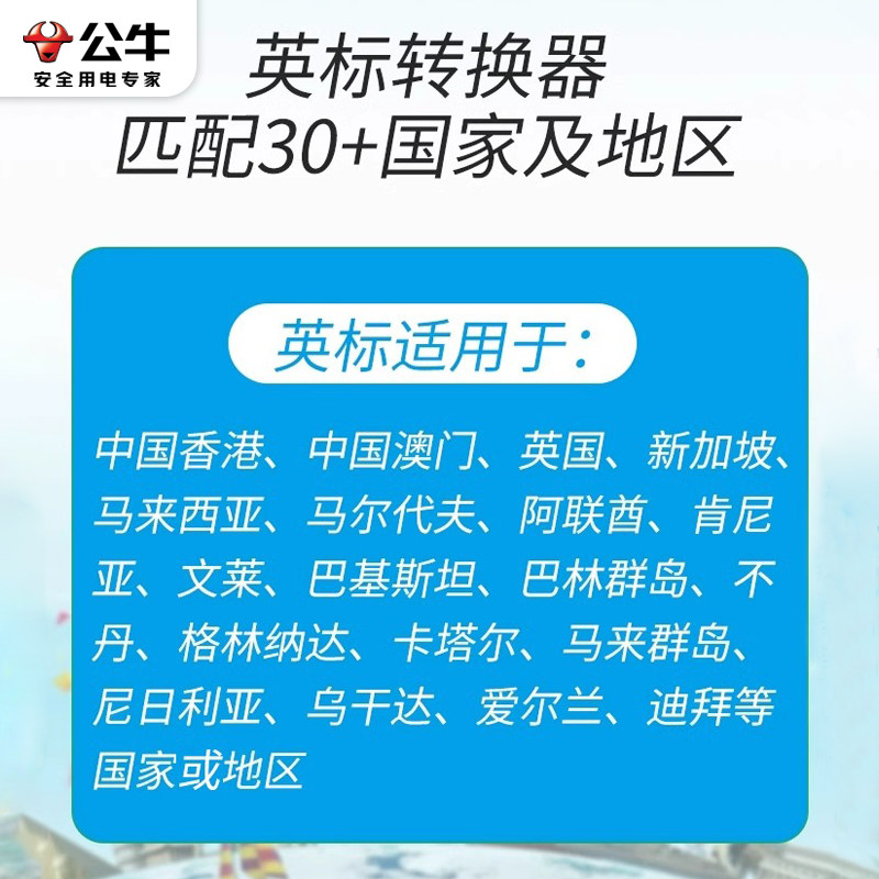公牛香港转换插头英标转换器插座澳门英国新加坡马尔代夫出境使用