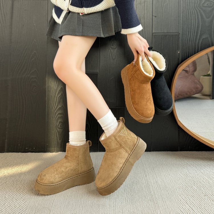 厚底雪地靴女皮毛一体面包鞋2025新款短靴子冬季加绒加厚保暖棉鞋
