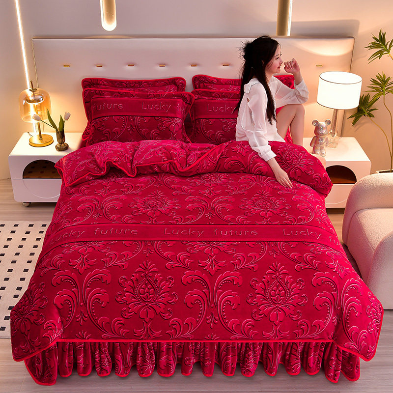 高档冬天牛奶绒四件套秋冬季加厚双面法兰珊瑚绒床上被套床裙新款