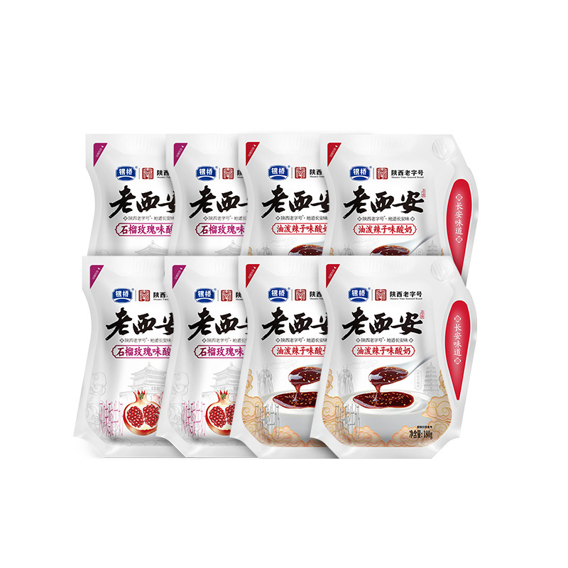 西安银桥油泼辣子酸奶4袋装+石榴玫瑰酸奶4袋装组合生牛乳酸牛奶