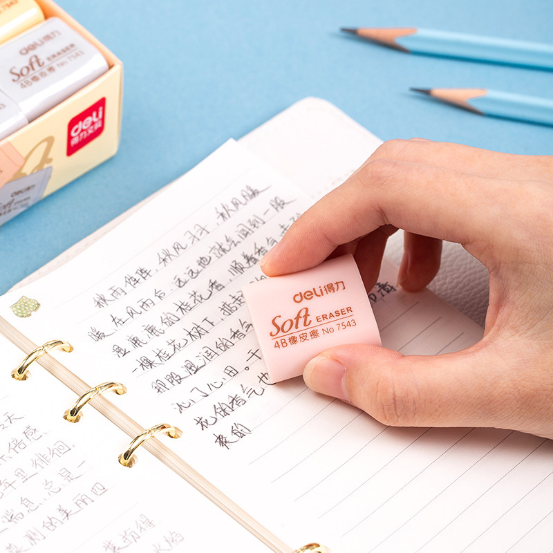 得力4B橡皮中小学生考试绘图绘画考试专用铅笔擦彩色橡皮擦文具