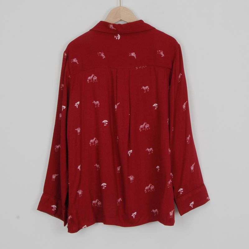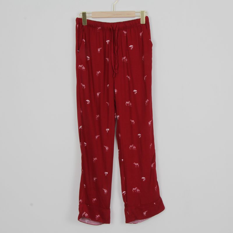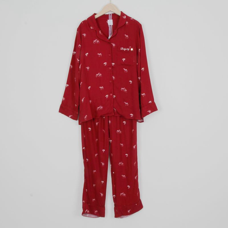 品牌尾货新款女款长袖长裤春夏款斑马印花红色睡衣家居服两件套装