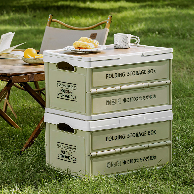 户外露营收纳箱野餐木盖储物箱车载后备箱整理箱手提篮野营折叠箱