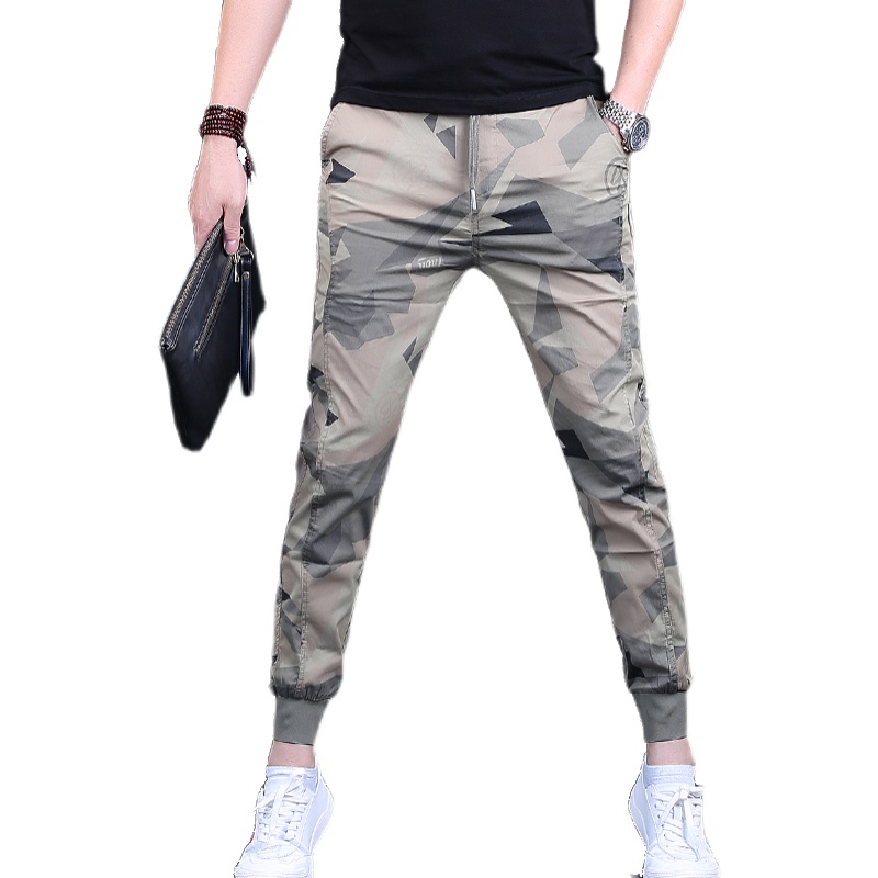 薄款迷彩休闲裤男青年宽松小脚系带男裤韩版束脚运动裤子潮流夏季
