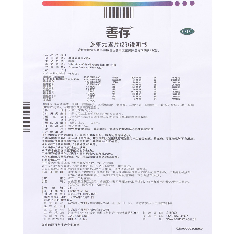 善存片多维元素片复合维生素c片b2叶酸vc锌成人官方29维生素60片