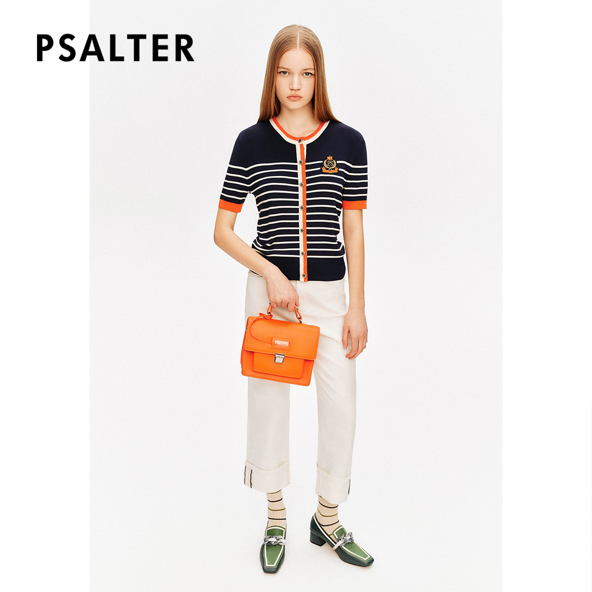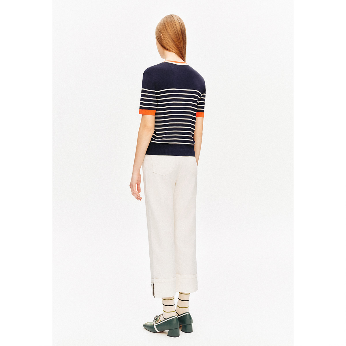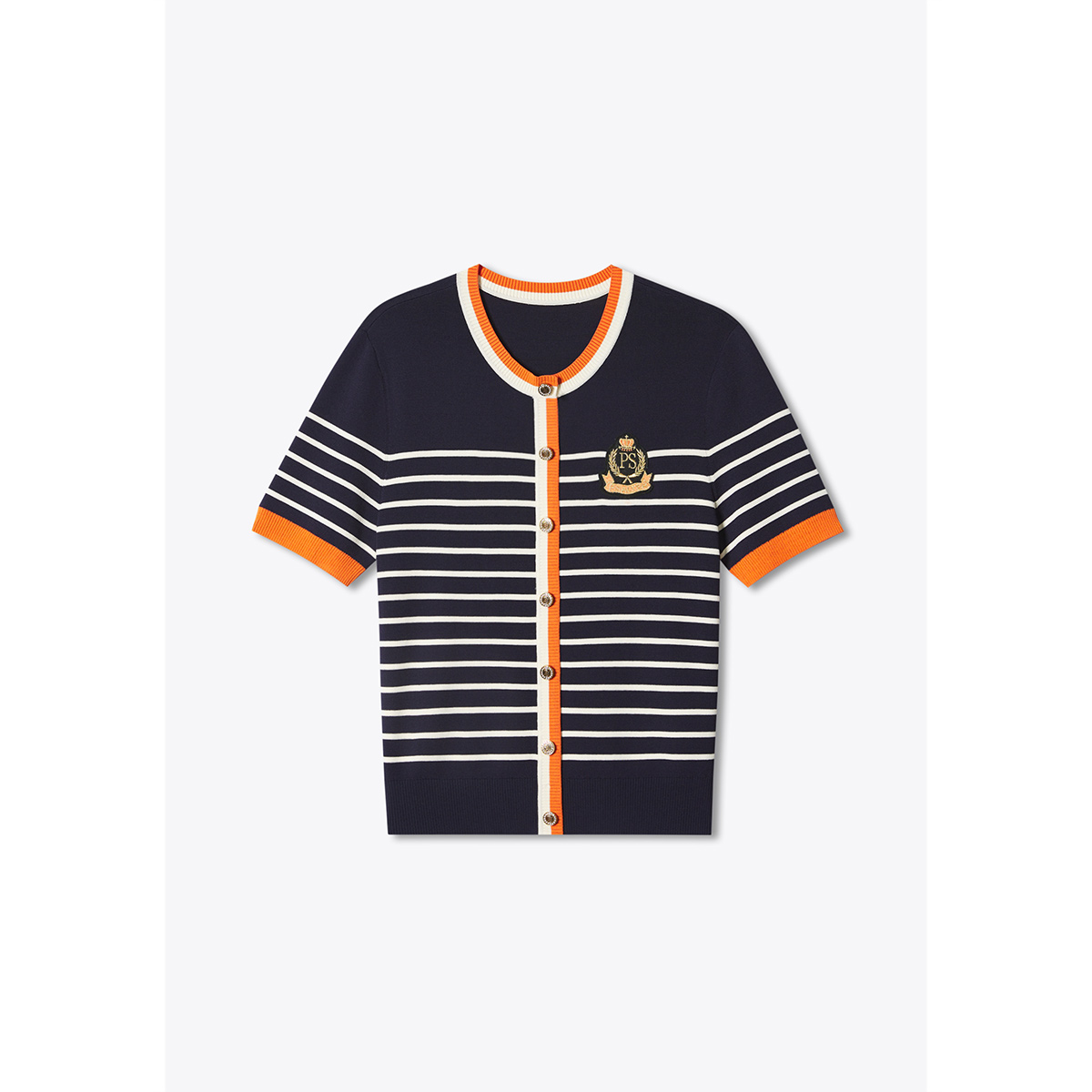 【凉感曲珠】诗篇专选学院徽章圆领撞色边条纹短袖针织衫夏